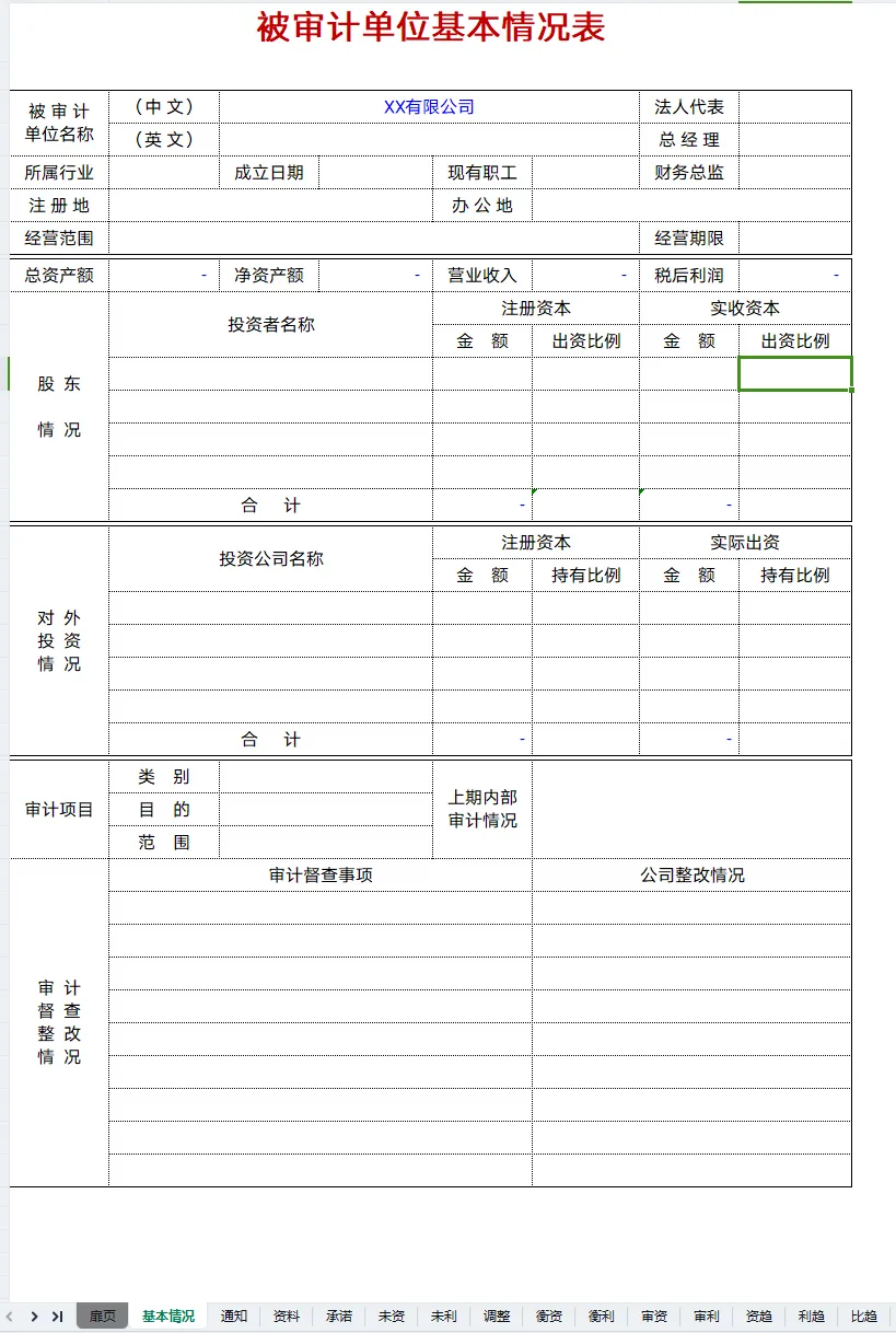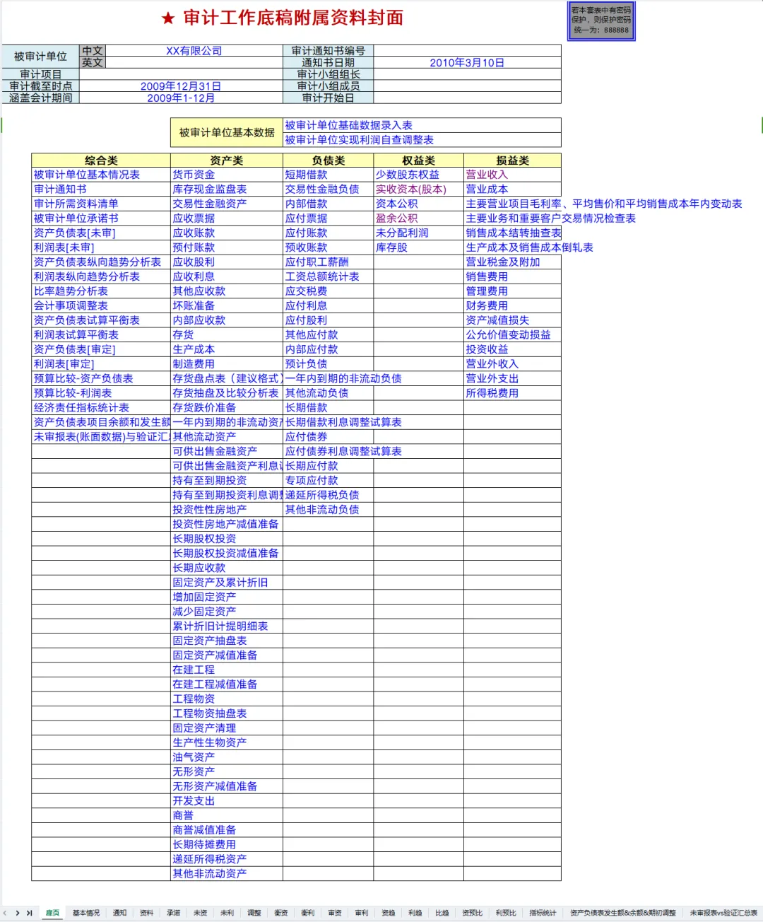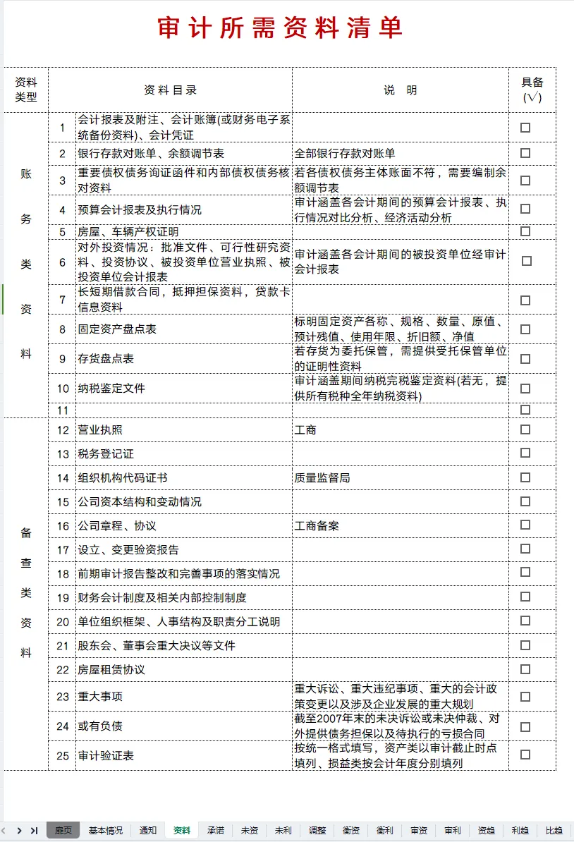 2026年新版审计底稿模板excel版来了!综合类+资产类+负债类+权益类+损益类全覆盖!审计小白来了也会用!