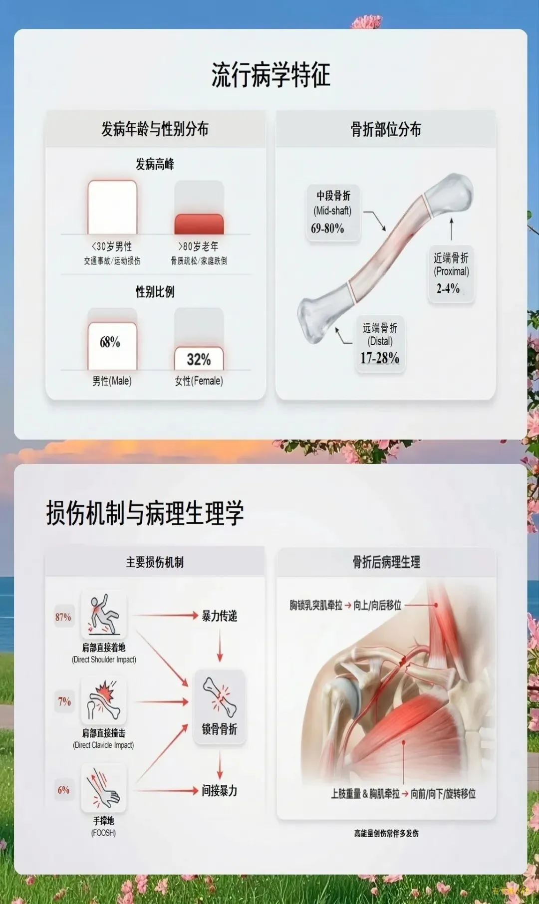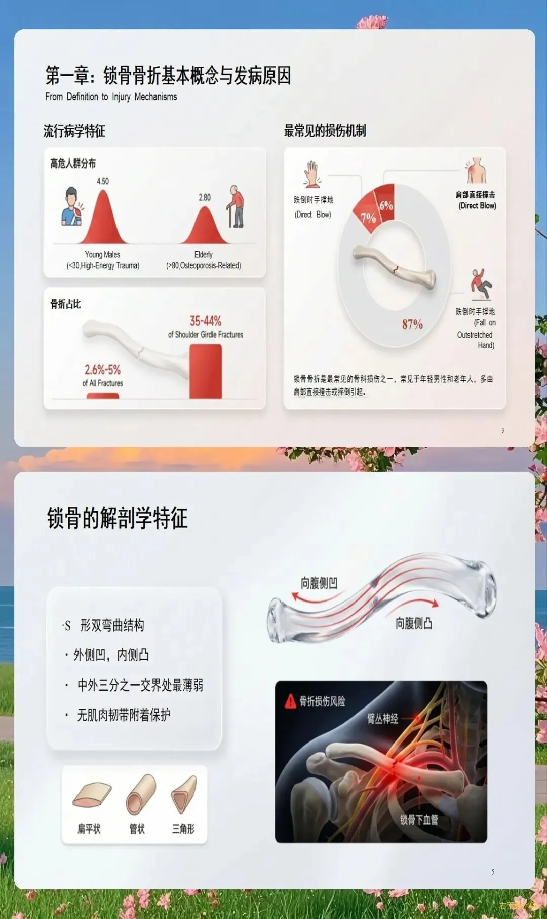 锁骨是连接上肢与躯干的重要骨骼,呈S形弯曲,位于皮下,位置表浅,无强大肌肉覆盖,这些解剖特点使得锁骨成为全身最容易发生骨折的部位之一,占全身骨折的5%-10%,占肩部骨折的44%-66%。