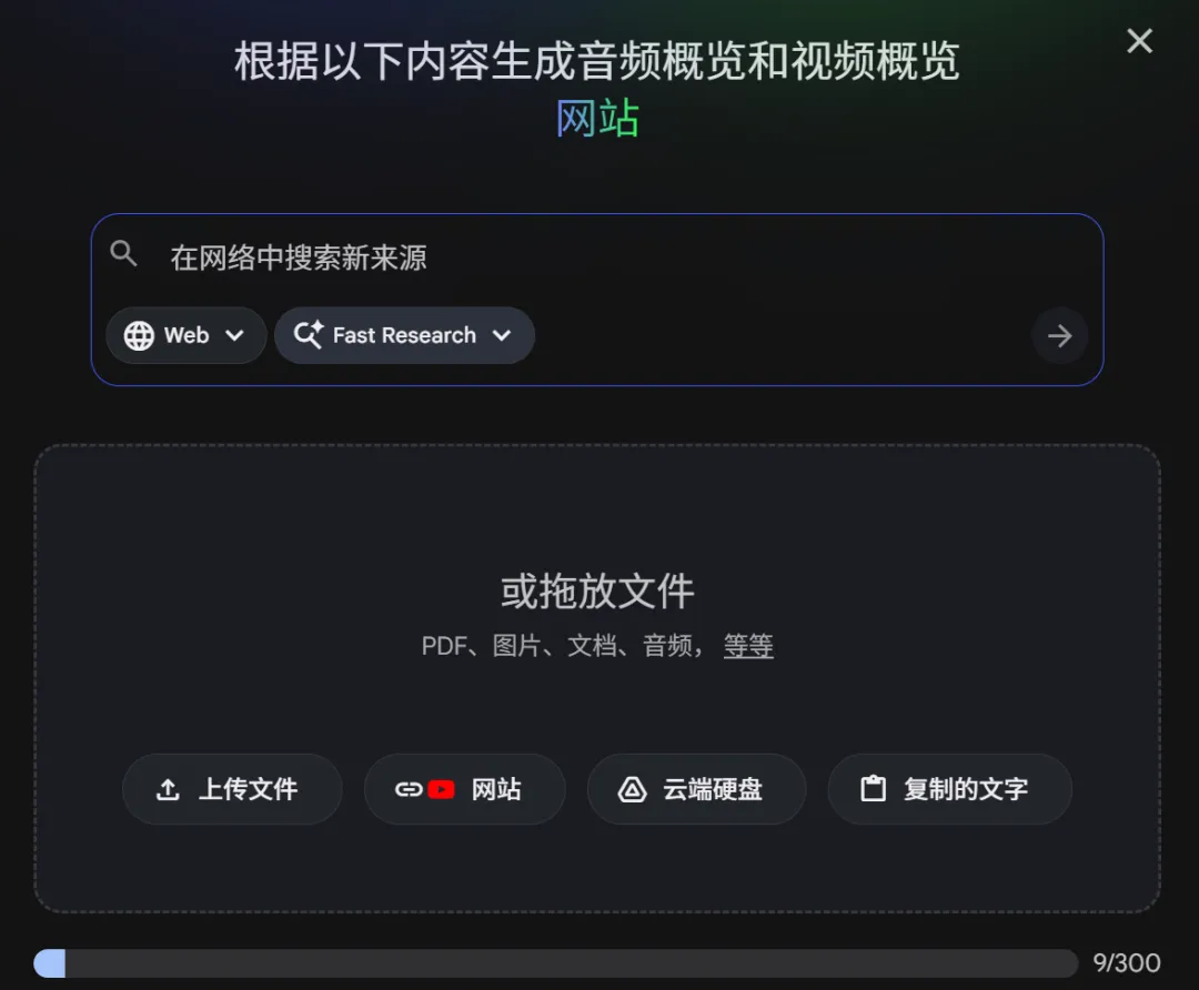 NotebookLM 适合已经有现成素材的场景,比如报告、论文、网页、会议纪要、课程资料。