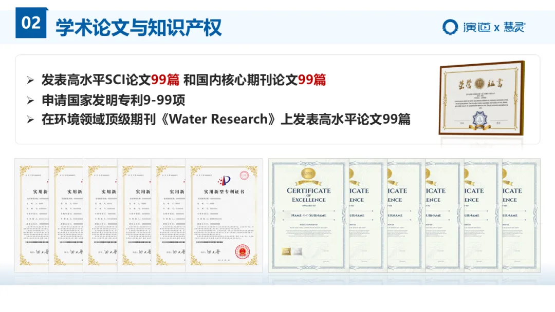 - 科研产出丰硕:发表高水平SCI论文、国内核心期刊论文各99篇,其中在环境领域顶刊《Water Research》发表99篇;申请国家发明专利9-99项。