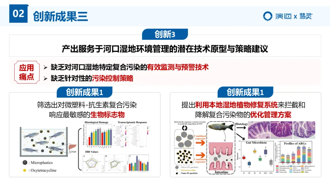 - 创新3:产出服务于河口湿地环境管理的潜在技术原型与策略建议,针对监测预警、污染控制的应用痛点,筛选出复合污染敏感生物标志物,提出基于本地湿地植物的修复系统优化管理方案。