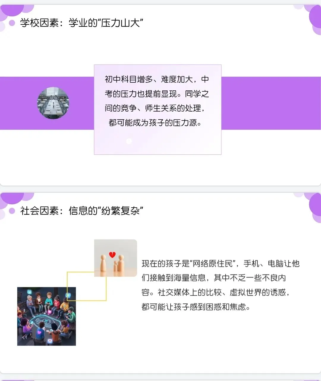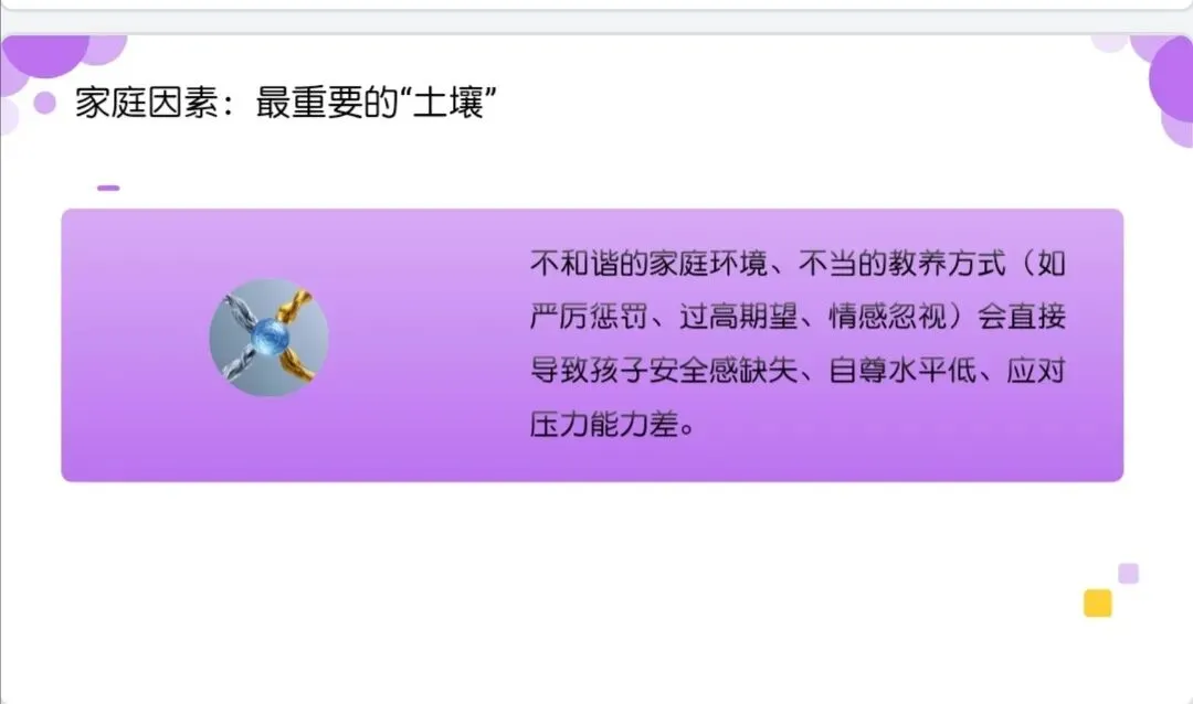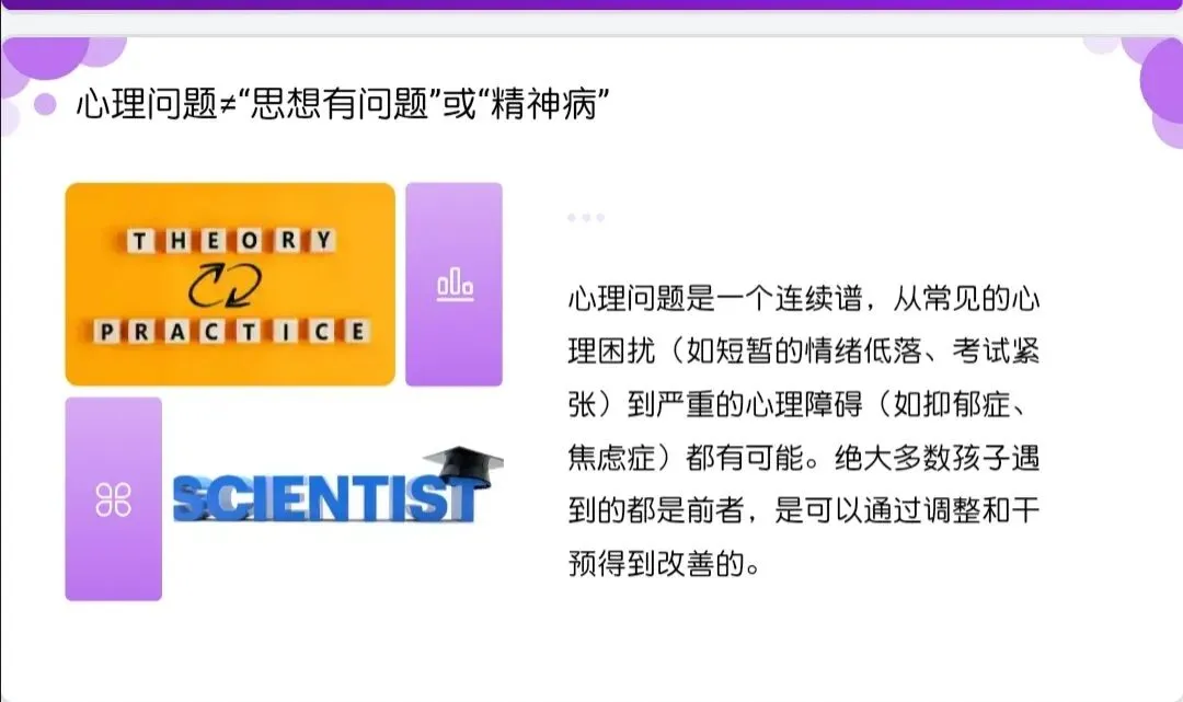 此处省略家长“健脑操”视频。。各位家长,初中阶段的孩子,就像一株正在抽枝长叶的小树,需要阳光、雨露,也需要我们耐心的修剪和守护。今天我们聊了心理认知、成因分析和情绪沟通,核心只有一个:用理解代替指责,用关注代替焦虑,和孩子一起面对成长的难题。教育是一场双向奔赴,心理健康教育更是如此。希望今天的分享,能让大家多一份对孩子的理解,多一份和孩子沟通的底气。后续如果大家在育儿过程中遇到具体问题,也可以随时和我交流。最后,祝愿每一位家长都能成为孩子心理成长路上的智慧引路人,祝愿每一位初中生都能健康快乐成长,谢谢大家!1.转发2个50人以上微信群,3分钟后截图发给后台;或转发朋友圈不分组,2小时候截图,发给后台。2.打赏5.20米,后台留言,领取《读懂孩子的心》课件,12小时内回复。课件仅供学习使用,不得商用或二次上网传播。感谢!!