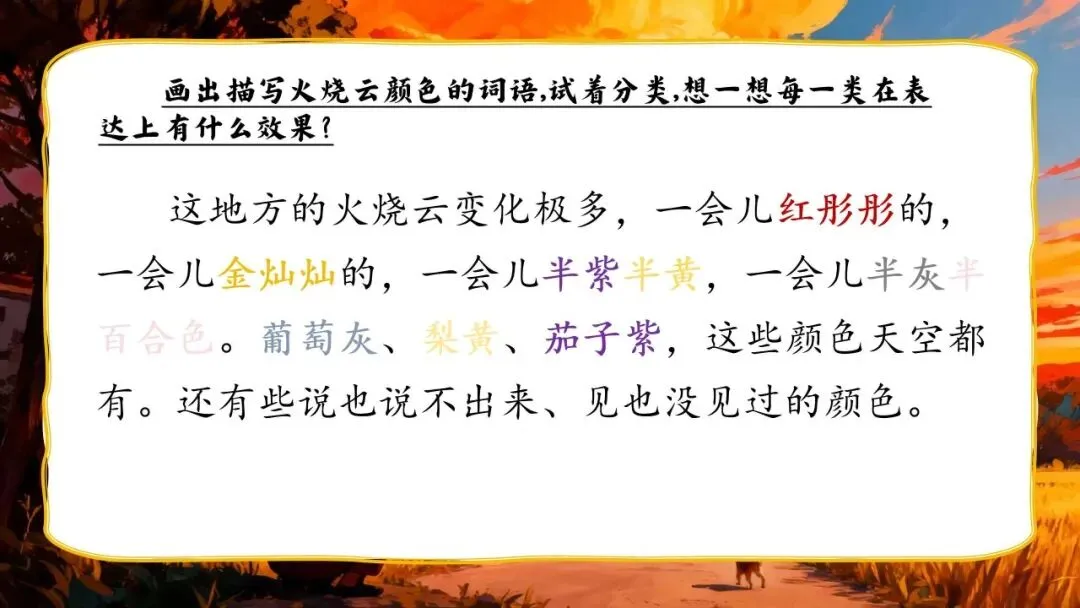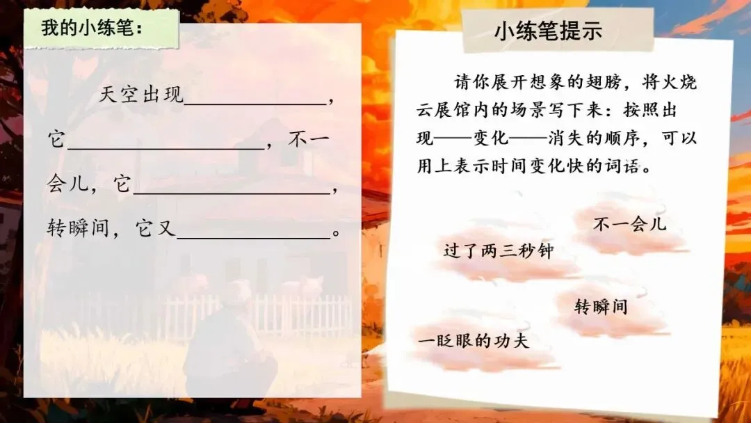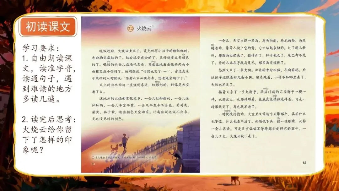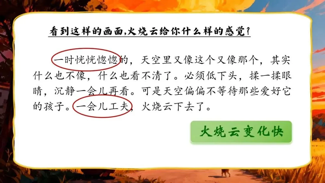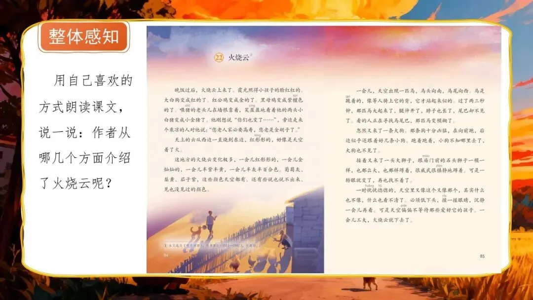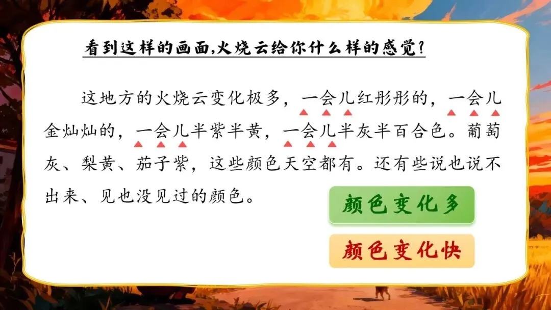 >三下新版《火烧云》:56页公开课PPT + 教学设计+逐字稿+板贴