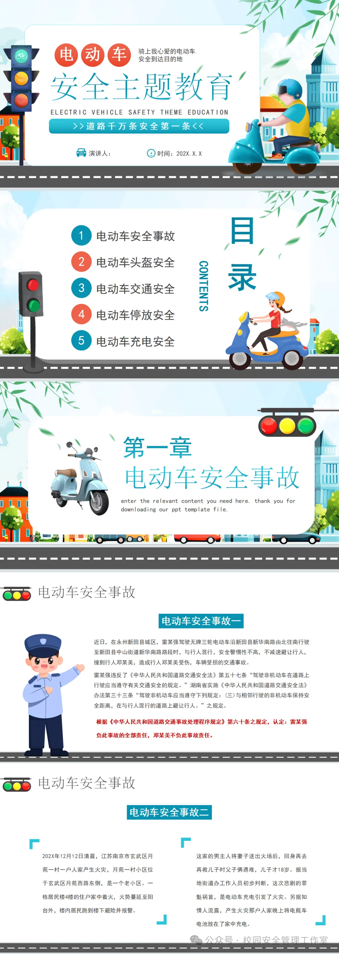 今日分享电动车安全教育PPT版,内容包括电动车安全事故、电动车头盔安全、电动车交通安全、电动车充电安全适用于小学、初中、中职、高中学校。