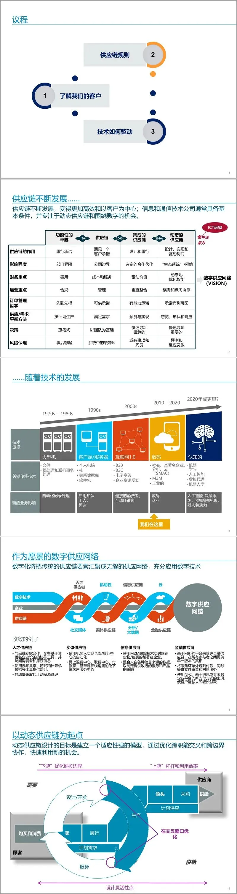供应链的演进方向是从传统线性模式转向动态、数字化的供应网络。方案强调,数字化技术正在将实体、信息、人才与金融四大供应链要素深度融合,形成“数字供应网络”。该网络具备实时可视化、智能分析、自动化执行等特征,能实现端到端的协同与优化。例如,通过M2M技术跟踪货物、机器人自动化仓储、基于云的金融供应链平台等,均为数字供应链的具体体现。