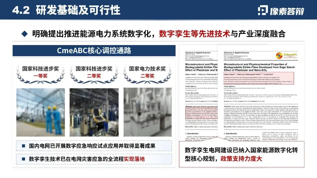 - 研发基础扎实项目团队拥有国家科技进步奖、国家电力技术奖等核心成果,国内电网数字应急试点已验证技术可行性,且数字孪生电网建设纳入国家能源数字化转型规划,政策支持力度大。