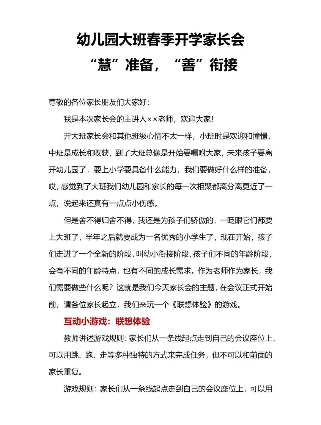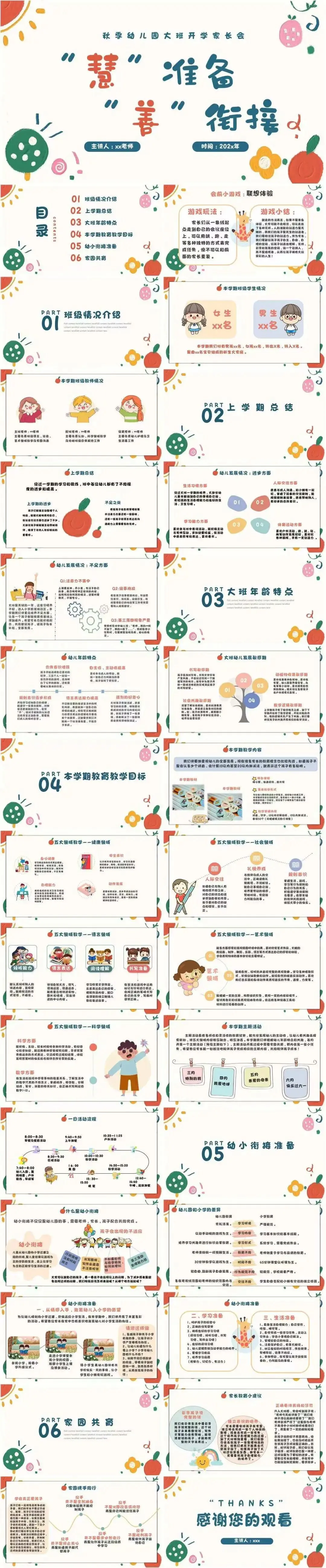 大班上学期开学家长会《慧准备,善衔接》PPT+发言稿