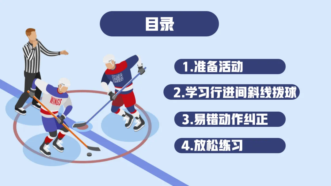 >陆地冰球杆上技术行进间斜线拨球PPT教学课件