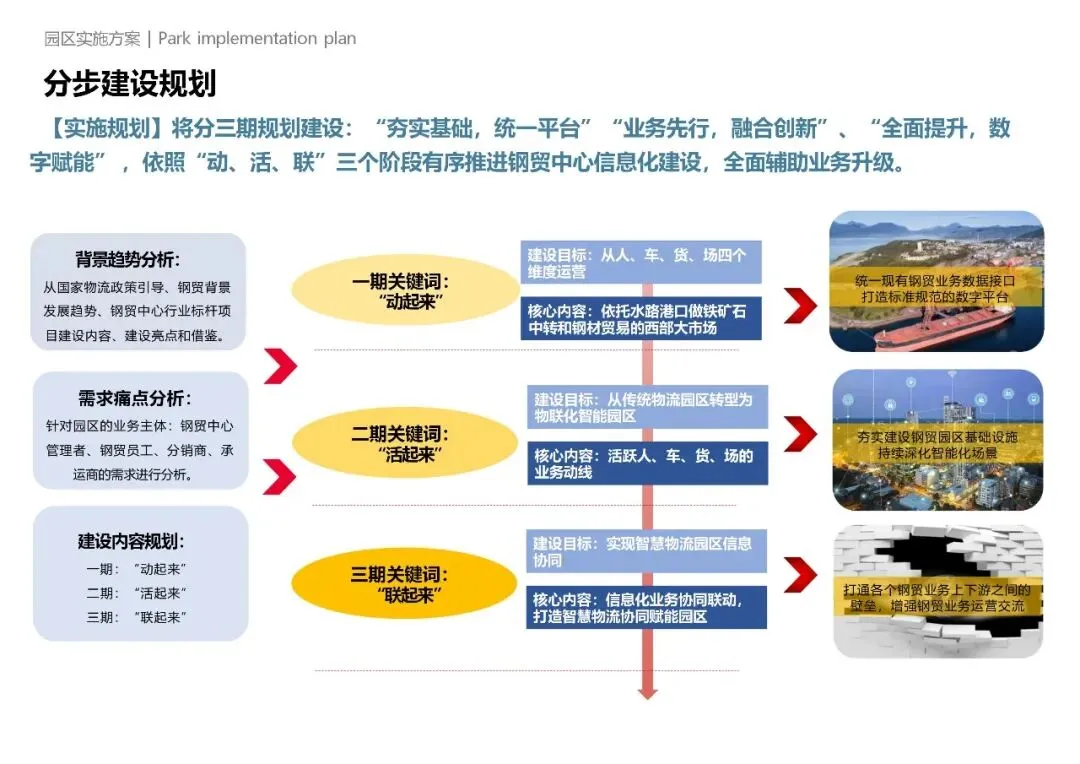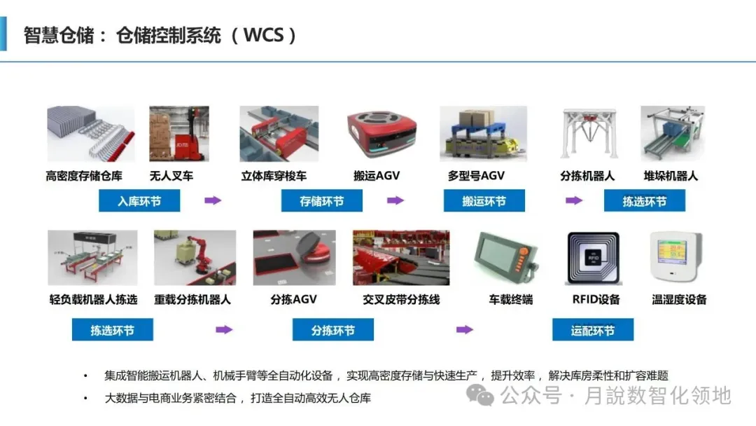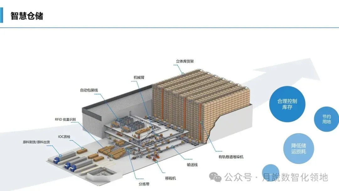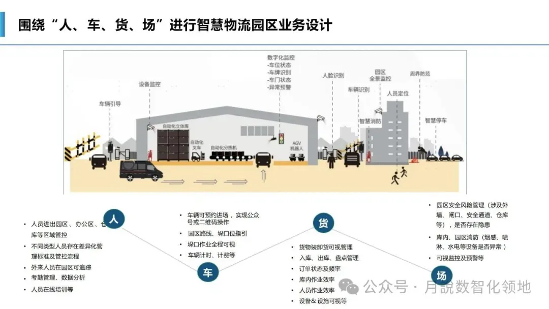 一是设施智能化,园区内仓储设备、运输车辆、装卸机具、监控系统等实现物联网互联,无人仓储、智能分拣、自动装卸、无人驾驶等智能装备规模化应用,替代传统人工操作,提升作业精度与效率;