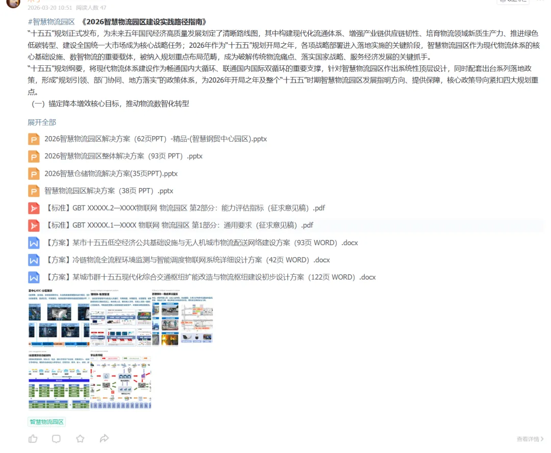 (【数智行业·领地】星球,搜索“智慧物流园区 ”标签方案完整版)苹果用户公众号回复“1”加木兮或者直接加木兮(MuxiYuebao0920),加入星球~