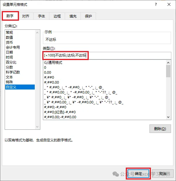 3. 在弹出的对话框中选择“数字”选项卡 --> 选择“自定义” --> 在“类型”区域输入以下公式 --> 点击“确定”: