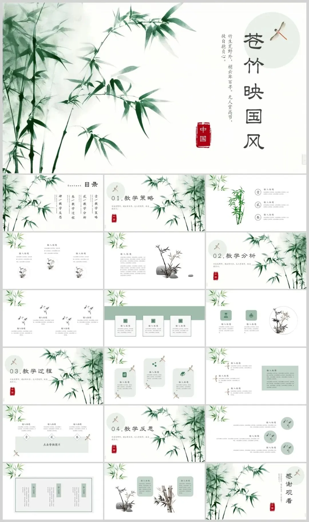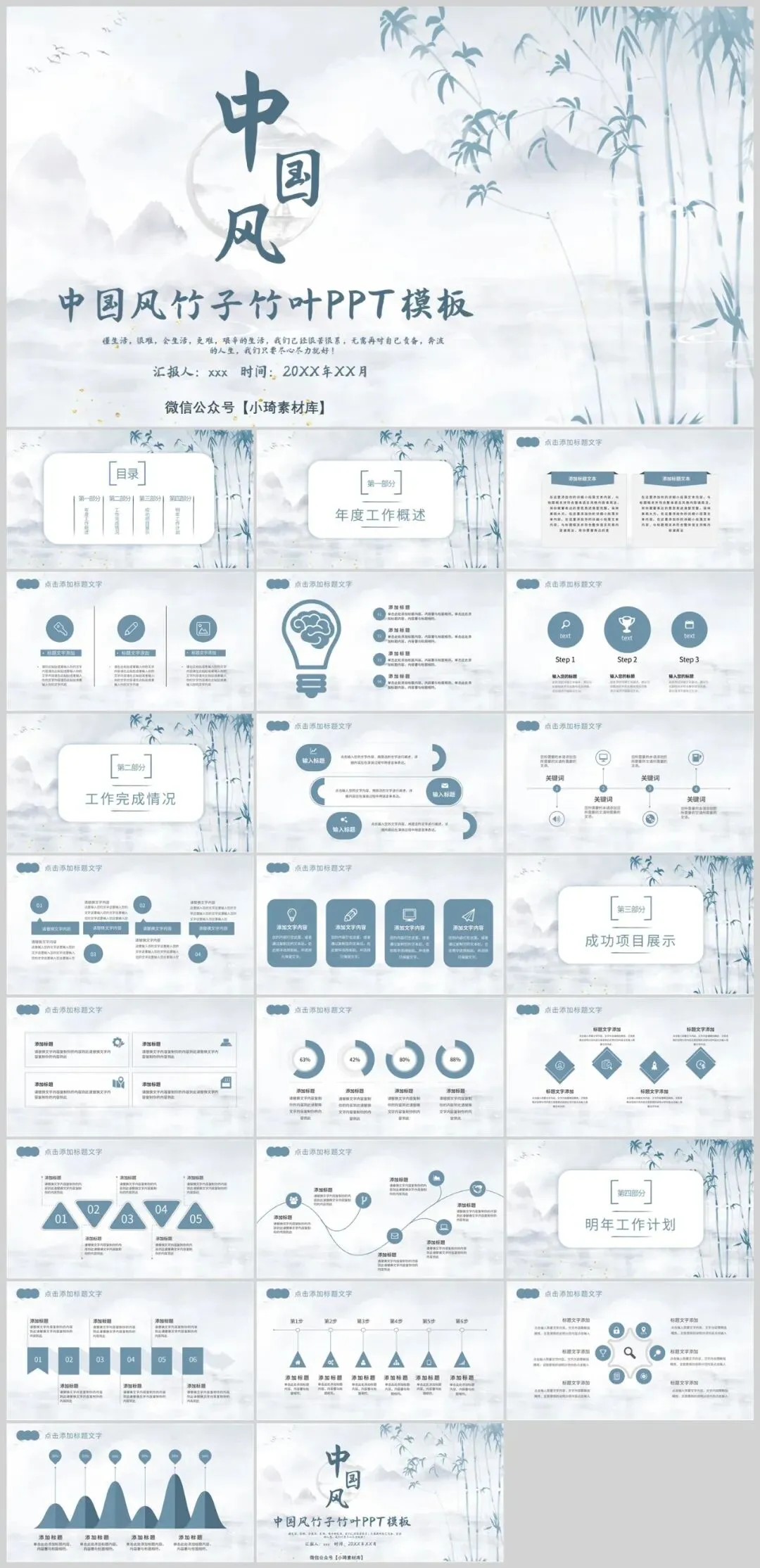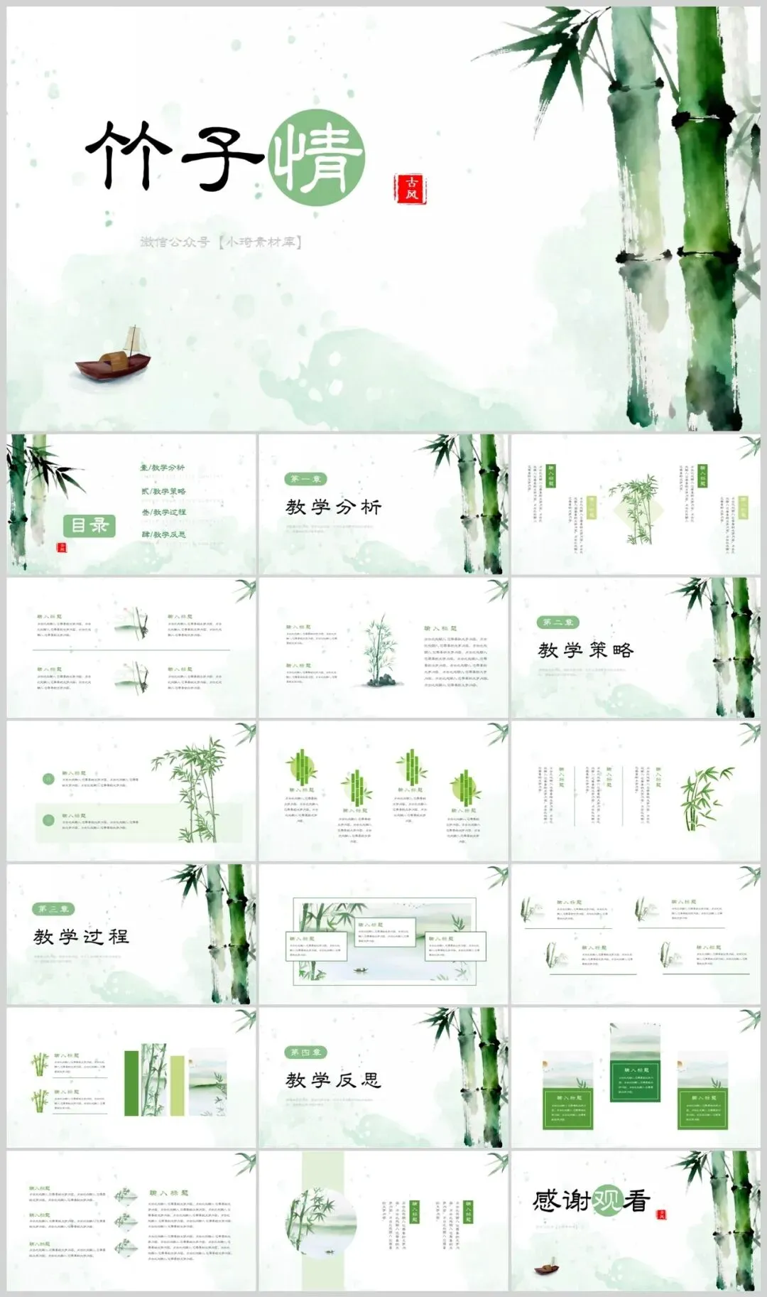 中国风竹子PPT模板适用于多种场合。无论是学术交流、商务演示,还是艺术分享,它都能以其独特的魅力吸引观众,增强演示的感染力。