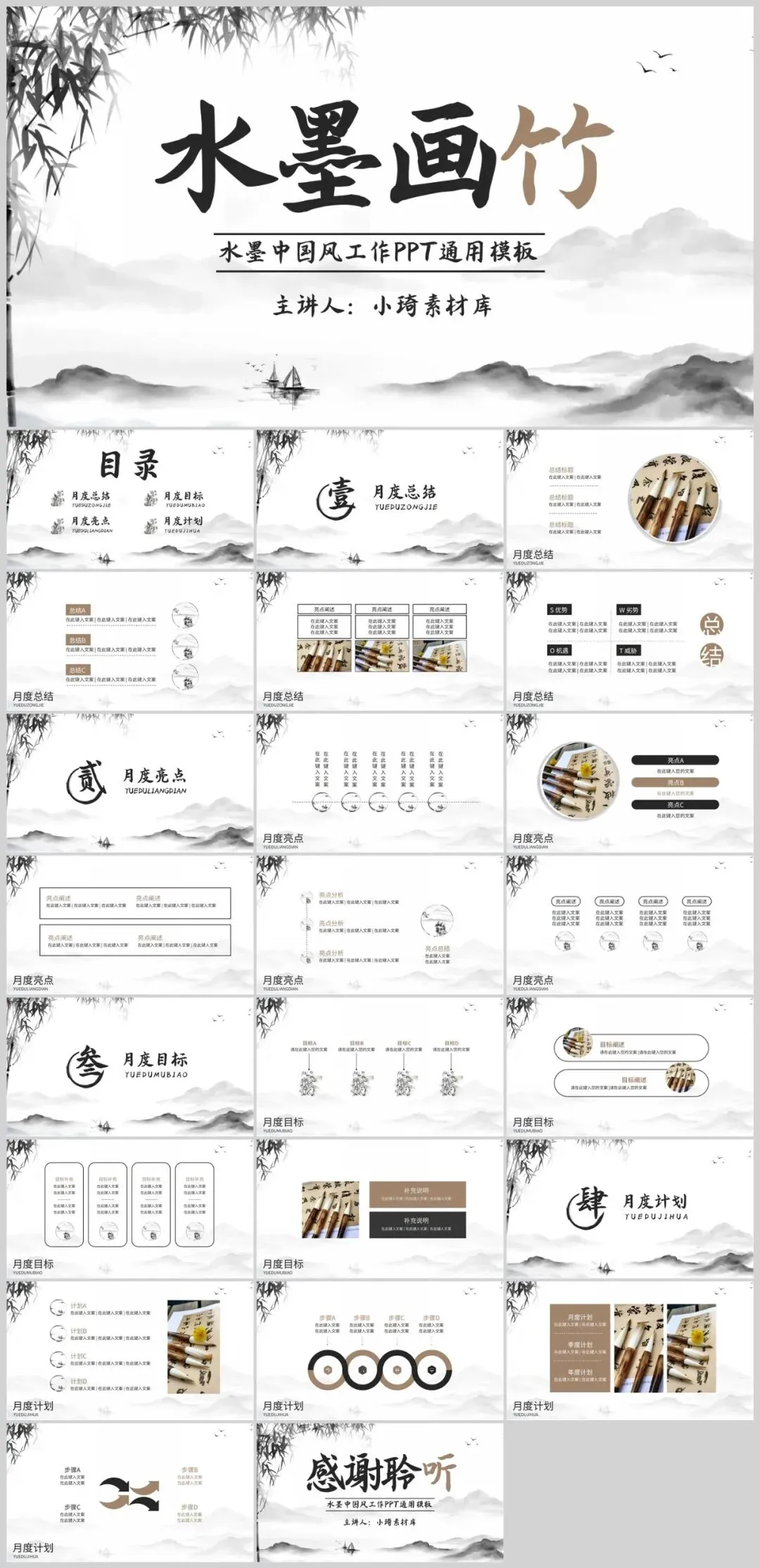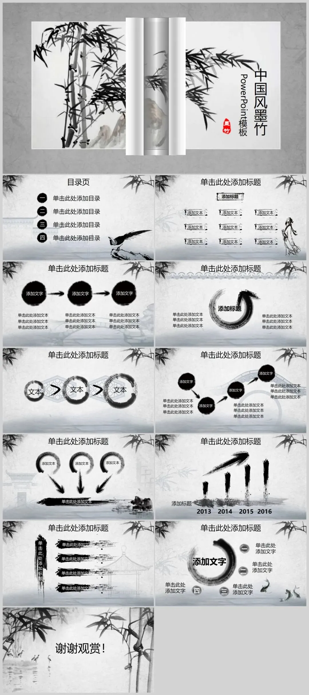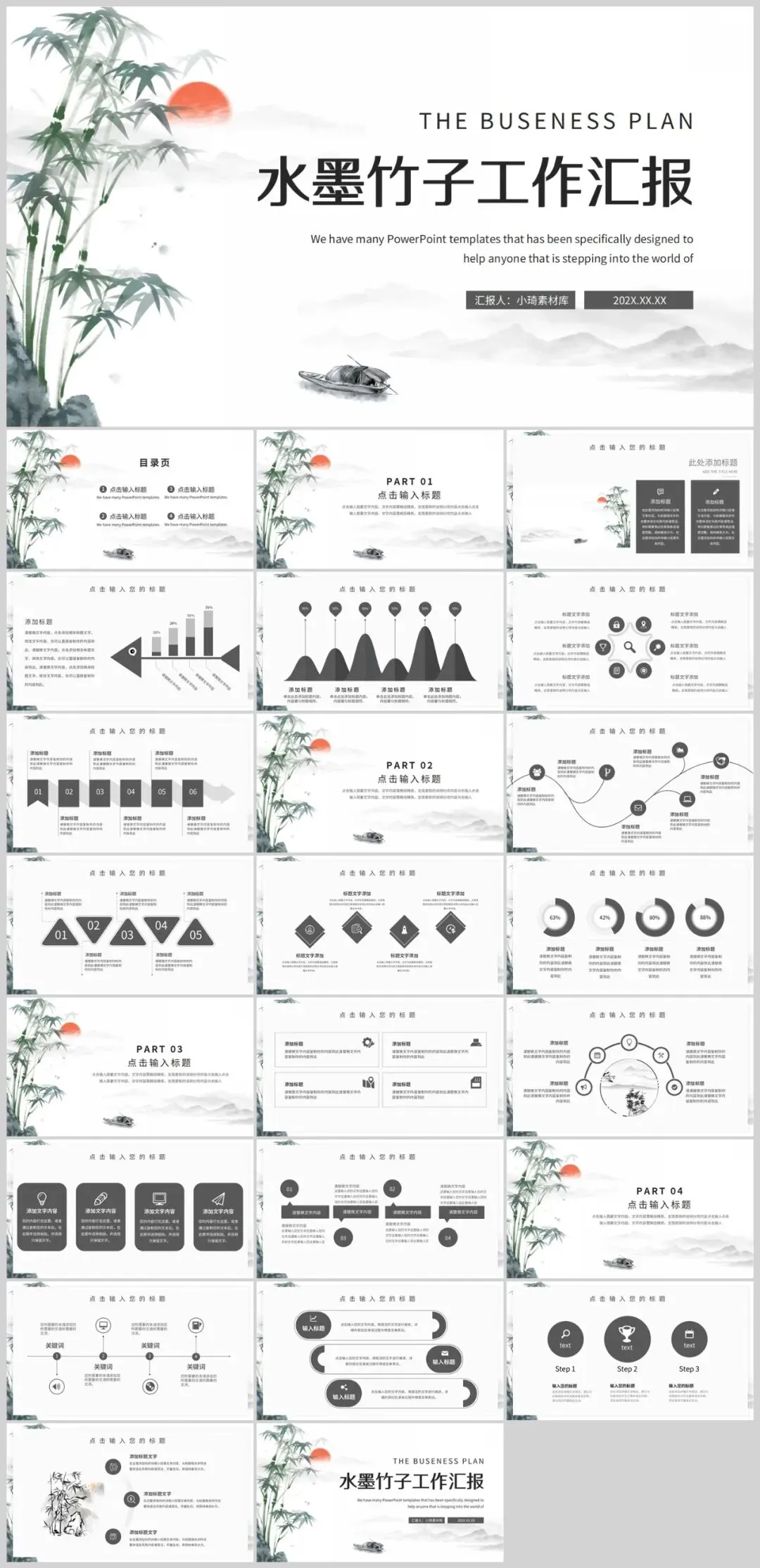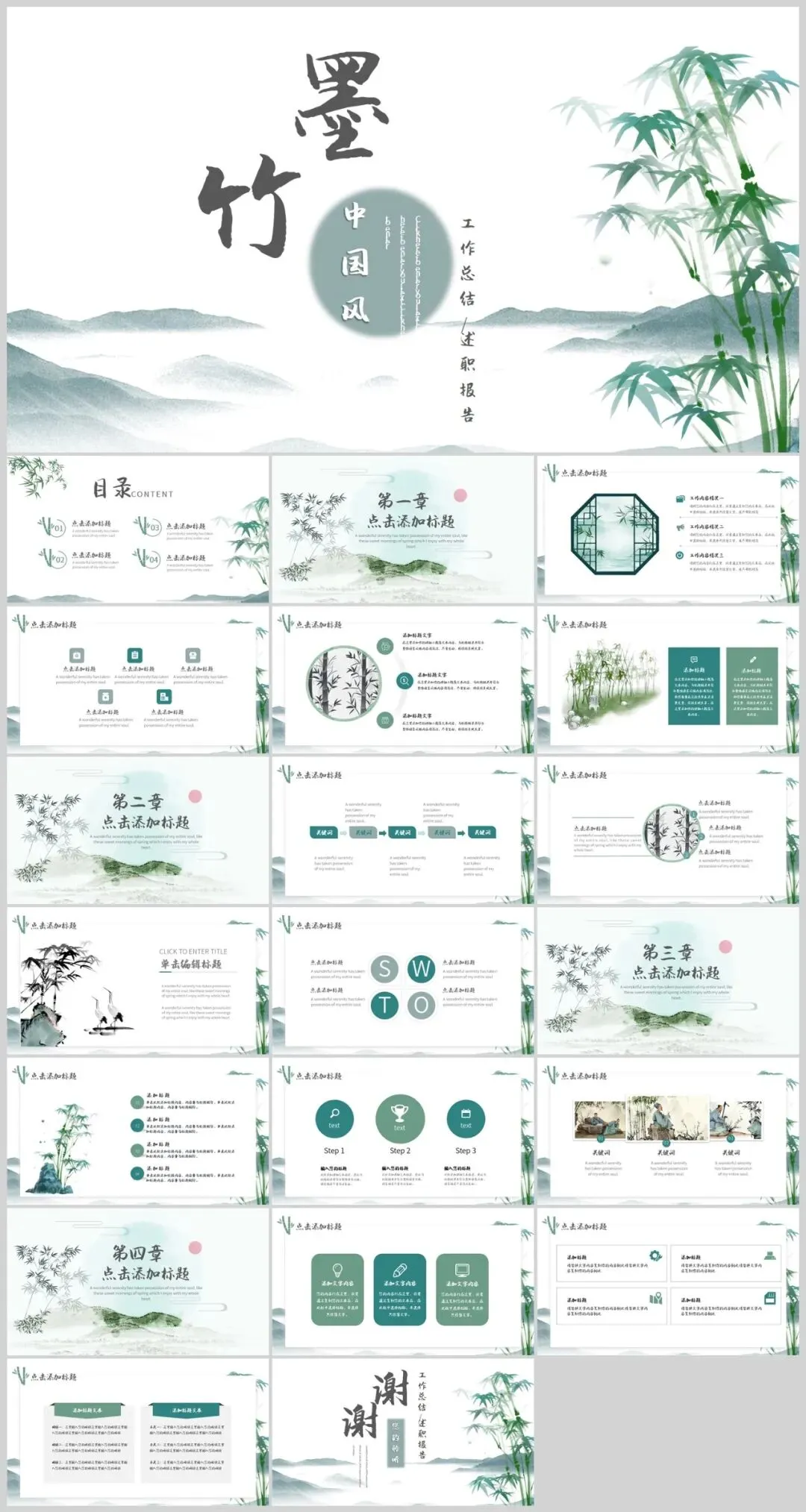 中国风竹子PPT模板适用于多种场合。无论是学术交流、商务演示,还是艺术分享,它都能以其独特的魅力吸引观众,增强演示的感染力。