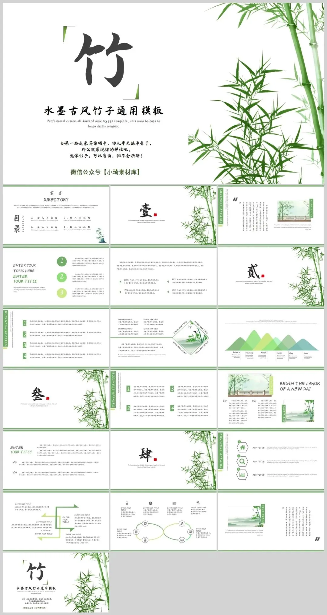 中国传统文化中,竹子象征着坚韧不拔、高洁谦逊的品质,而中国风竹子元素PPT模板则将这一文化元素与现代设计完美结合,为我们的演示文稿增添了一份东方韵味。