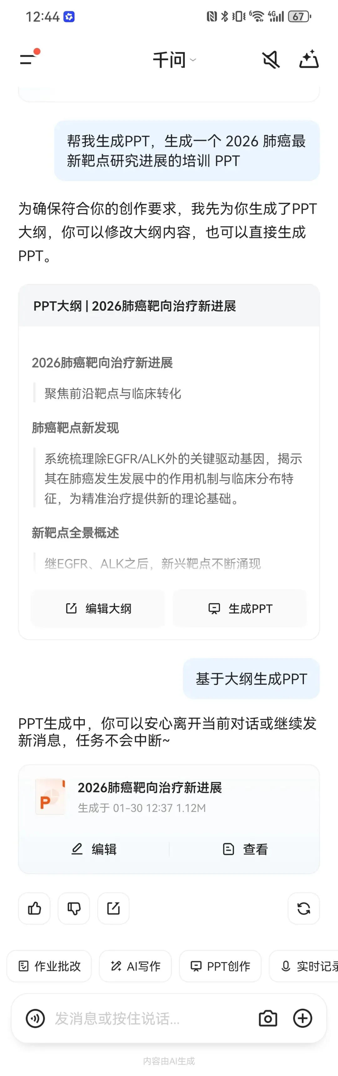 第二步输入关键词帮我生成PPT,生成一个 2026 肺癌最新靶点研究进展的培训 PPT