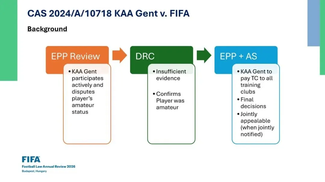 EPP审查结果及后续处理阶段:争议解决庭裁定根特足球协会须向所有培训俱乐部支付培训补偿。该最终决定可在联合送达后进行联合上诉。