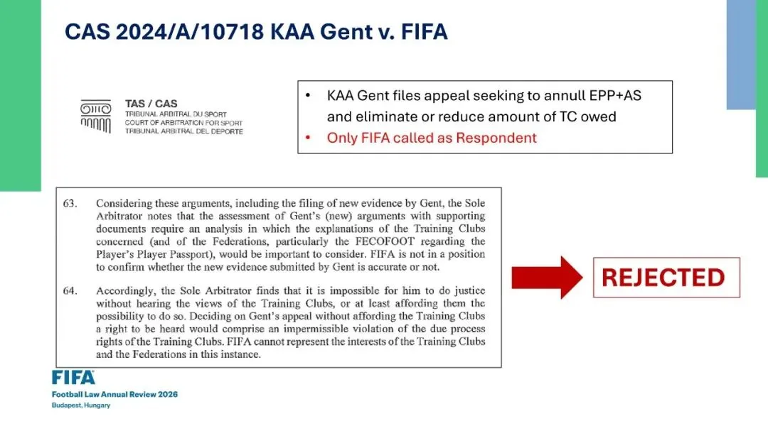 案例一:CAS 2024/A/10718 根特足球协会诉国际足联