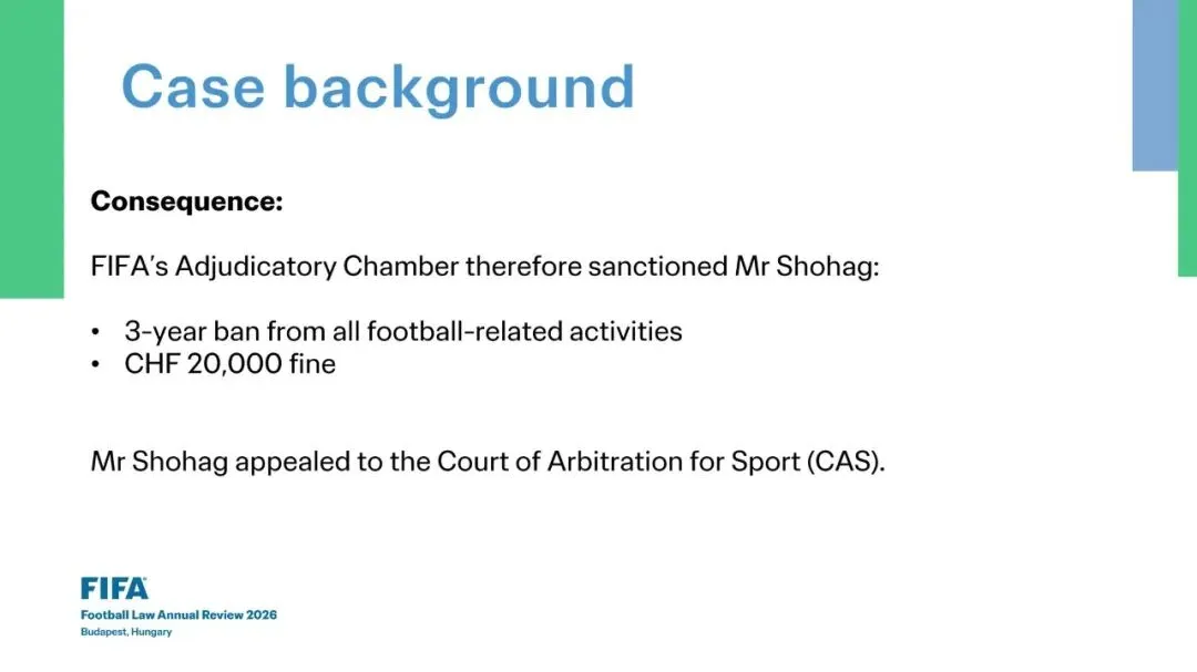 Shohag先生随后向国际体育仲裁院(CAS)提起上诉。