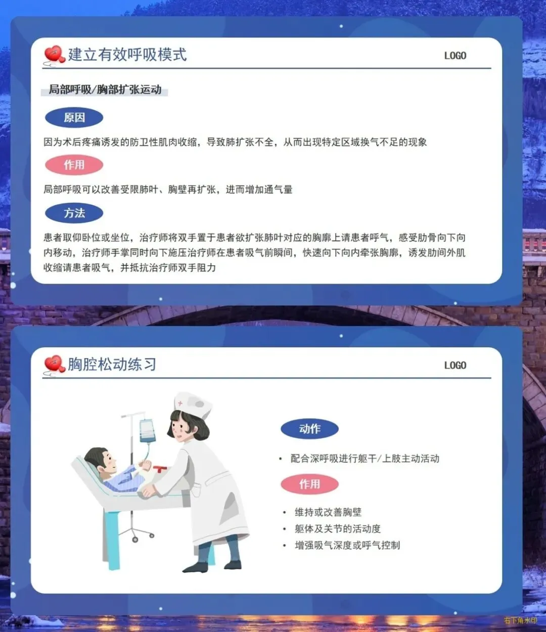 改善呼吸功能技术还包括功能性活动如行走、上下楼,体能训练如快走、慢跑,以及瑜伽和太极等,可以增强呼吸功能和肺部灵活性。