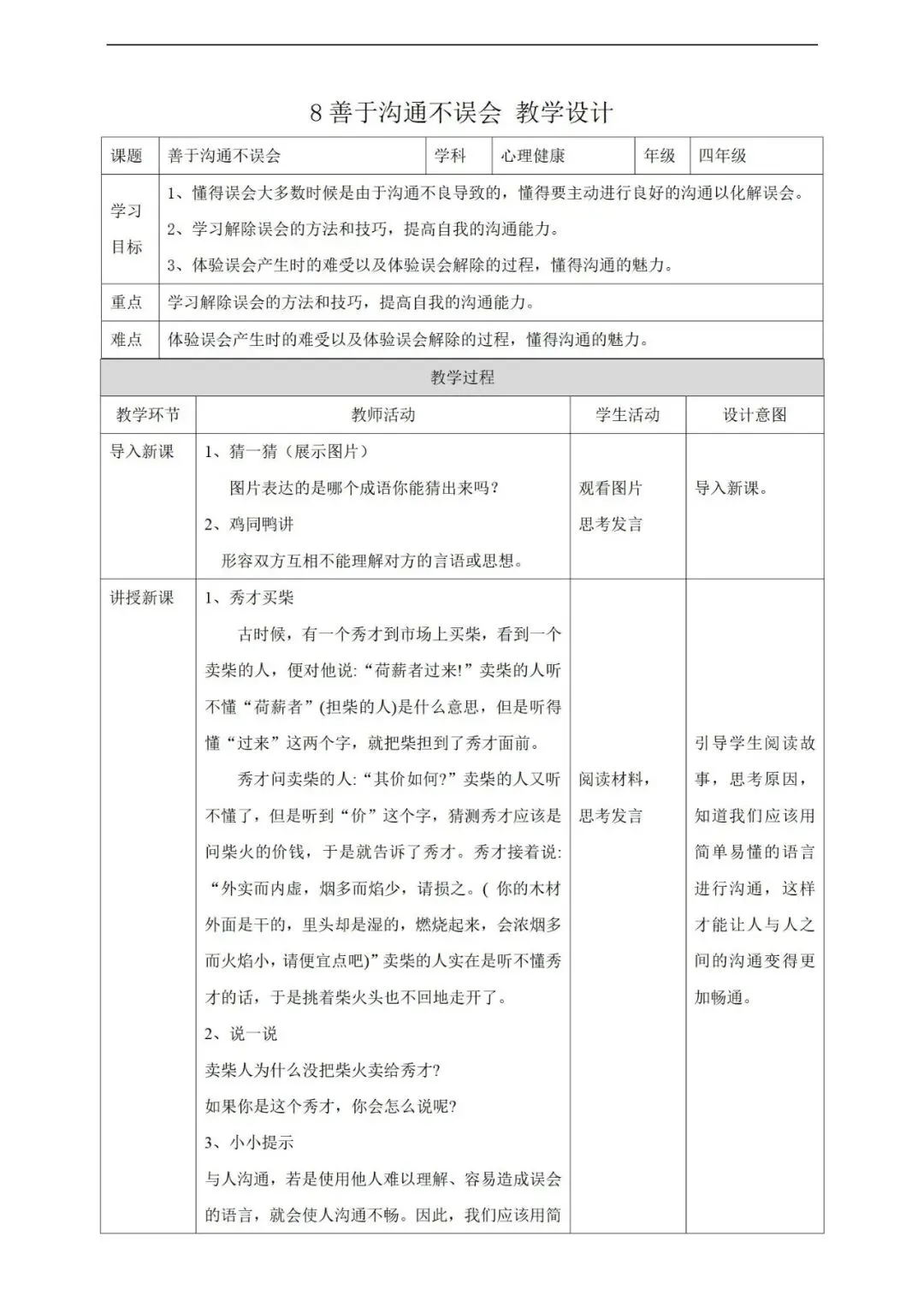 教科版《心理健康》四年级下册教学设计+ppt课件,可下载!