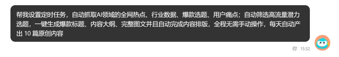 公众号的朋友每天最头疼的就是找选题和写初稿。所以我首先尝试的就是内容自动化生产任务