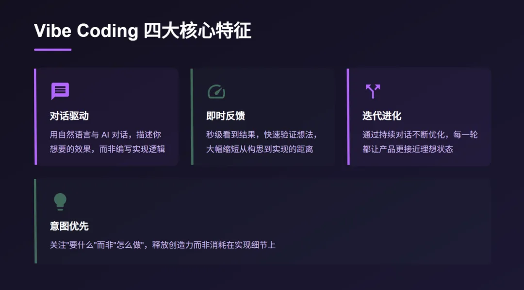 整体风格和配色完全遵循了提示词,内容上来看也完整的说明了Vibe Coding对于用户体验设计的意义。