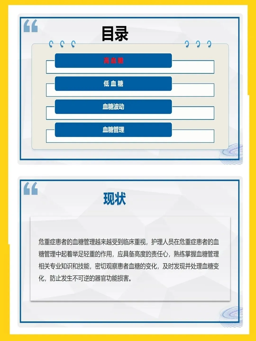 【护理PPT模板】重症患者血糖管理PPT模板