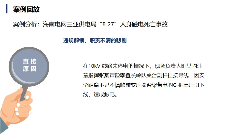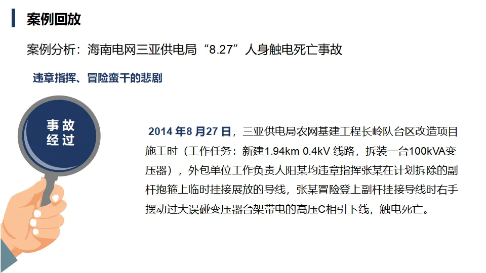 案例一:海南电网三亚供电局"8.27"人身触电死亡事故