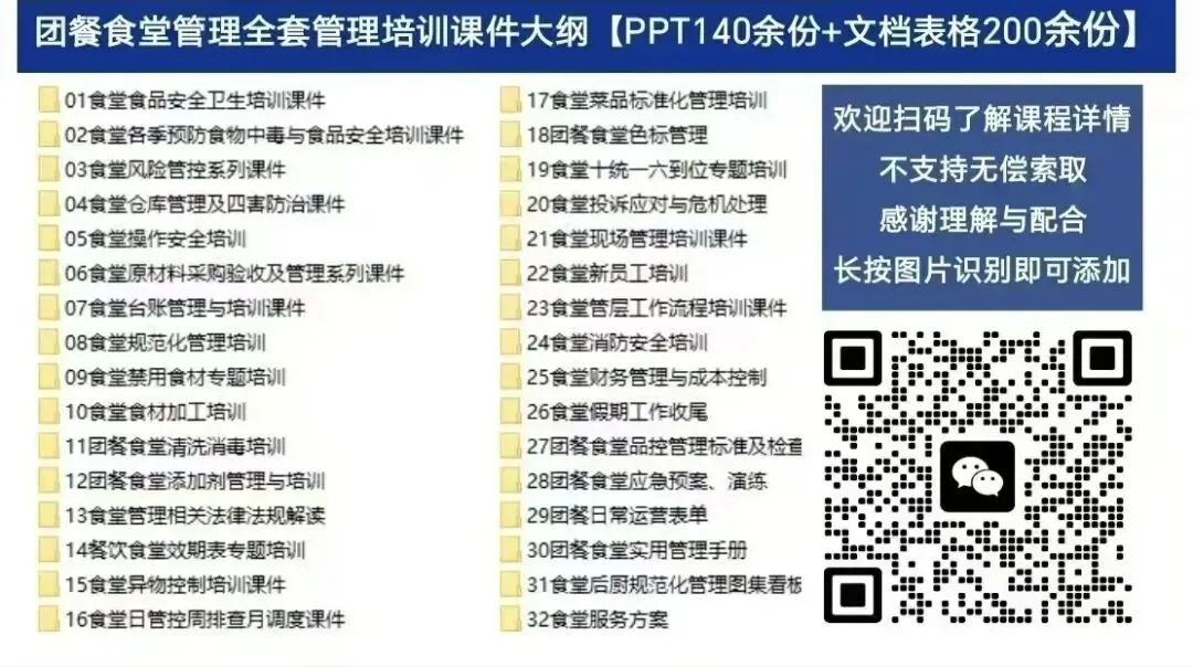 更多食堂管理培训服务可加v咨询