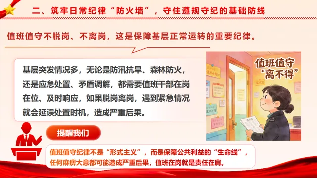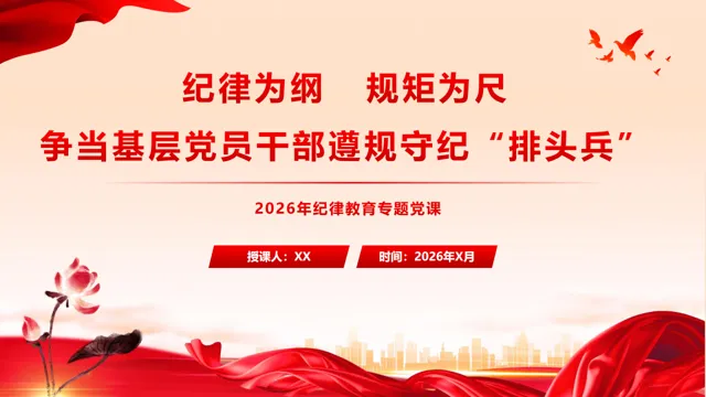 >PPT+讲稿:(2026年纪律教育专题党课)党纪教育《纪律为纲 规矩为尺 争当基层党员干部遵规守纪 “排头兵”》(51页)