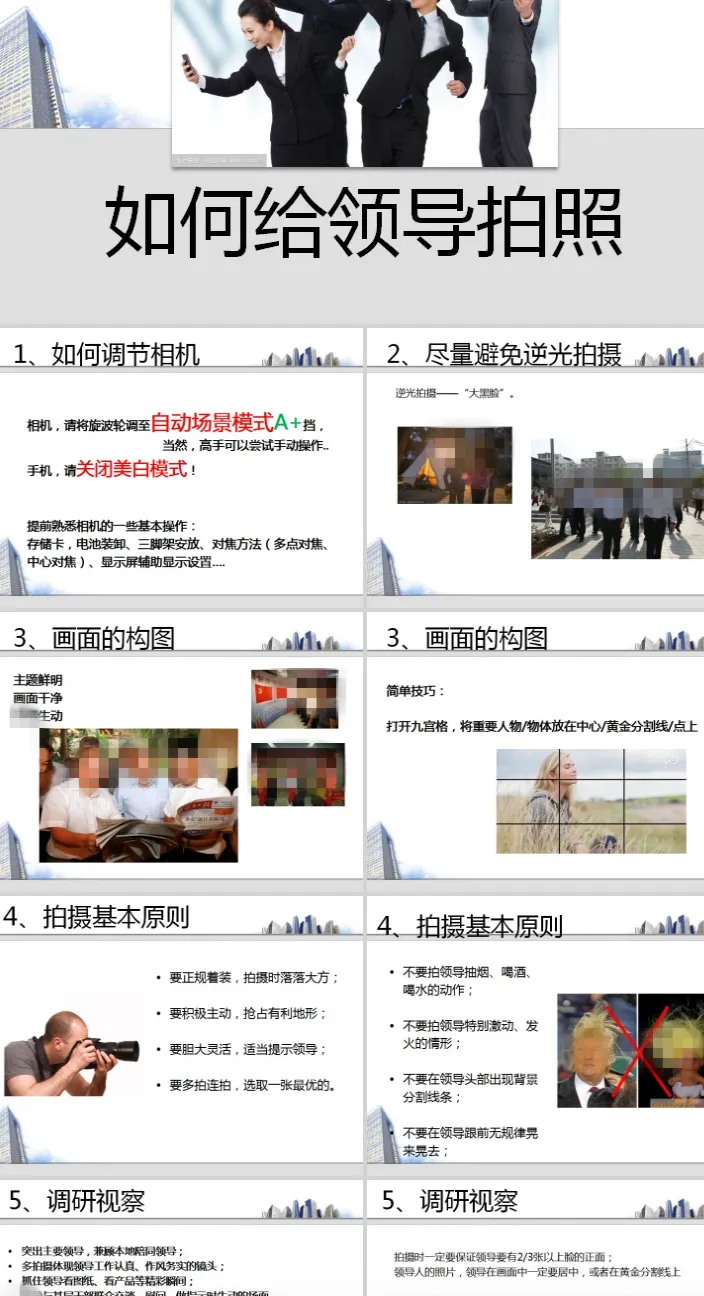 甄选15套摄影拍照相机技巧基础知识教学ppt课件 构图用光给领导拍照教程
