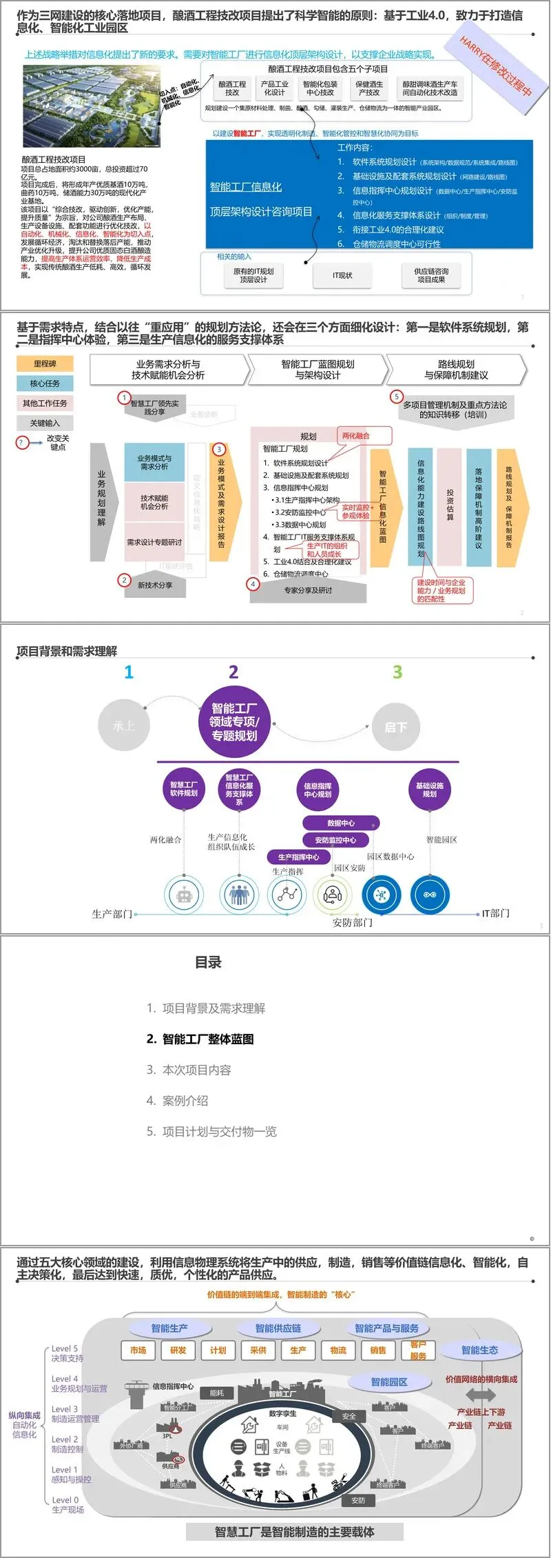 项目背景源于激烈的市场竞争环境。企业为应对挑战,制定了以“竞争性营销战略”为中心,前端深化渠道终端管控和会员管理,中端强化产供销财协同,后端构建强健后台支撑体系的业务战略。其中,“物联网”作为三网融合的核心,其关键载体正是本次规划的智能工厂。项目总占地面积约3000亩,总投资超70亿元,建成后将形成年产优质基酒10万吨、曲药10万吨、储酒能力30万吨的规模化生产基地。