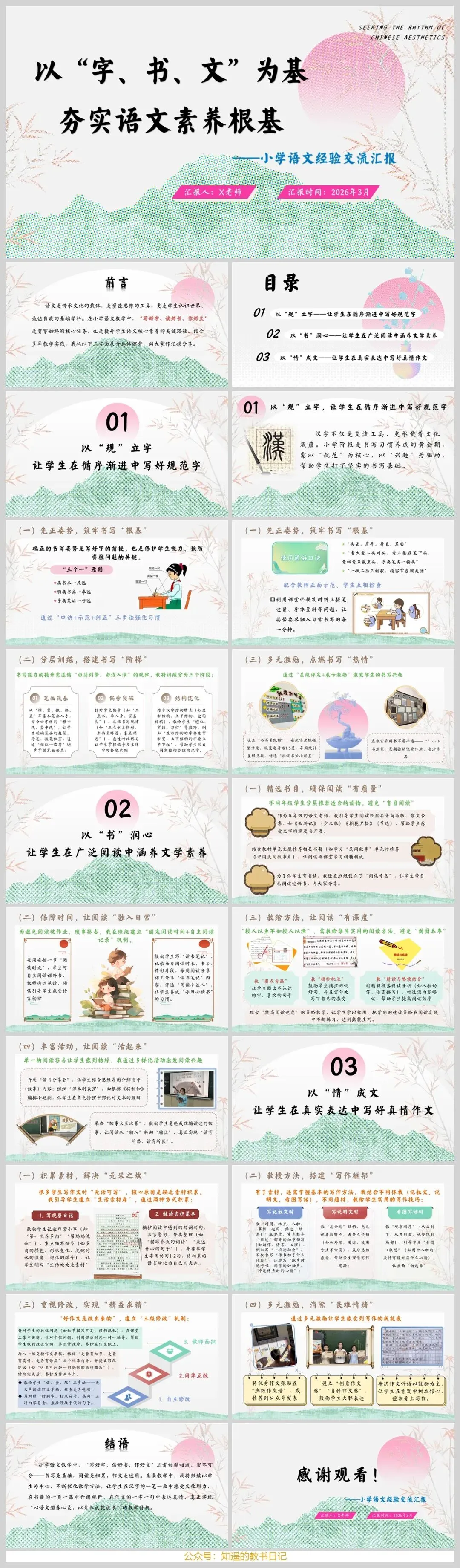 这份小学语文经验分享PPT结构清晰、方法实用、案例具体,完美诠释了如何以“字、书、文”为基,全方位夯实学生的语文素养根基。📚✍️