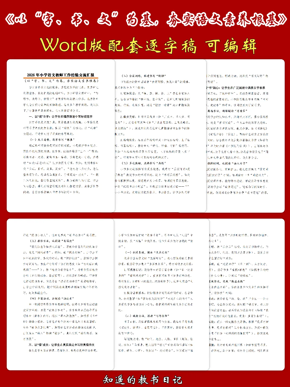 各位小学语文老师,大家好!今天分享一份小学语文教学经验交流PPT《以“字、书、文”为基,夯实语文素养根基》。