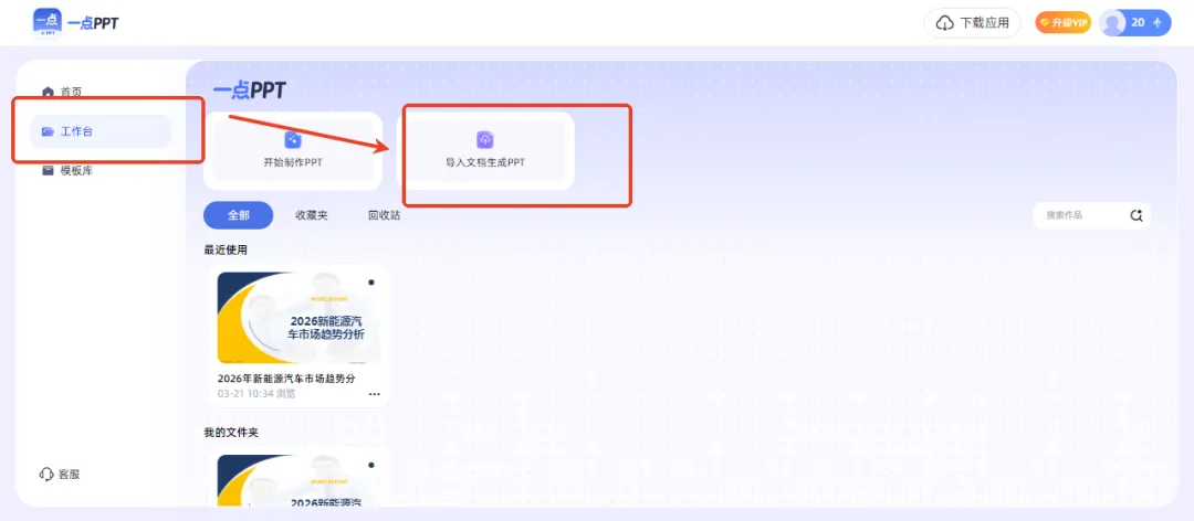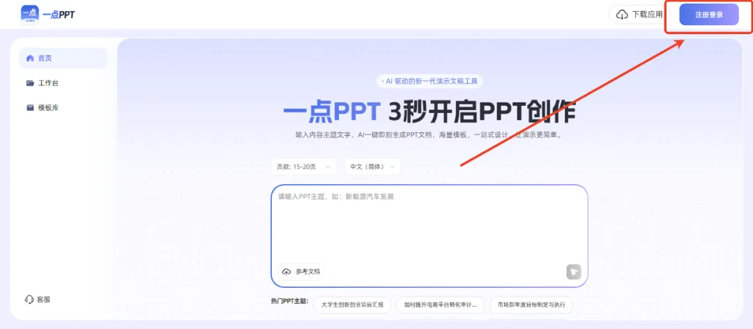 进入主页面后,首先映入眼帘的便是一点PPT的核心功能——一键生成PPT。下面,我们将重点介绍这一功能的使用方法。