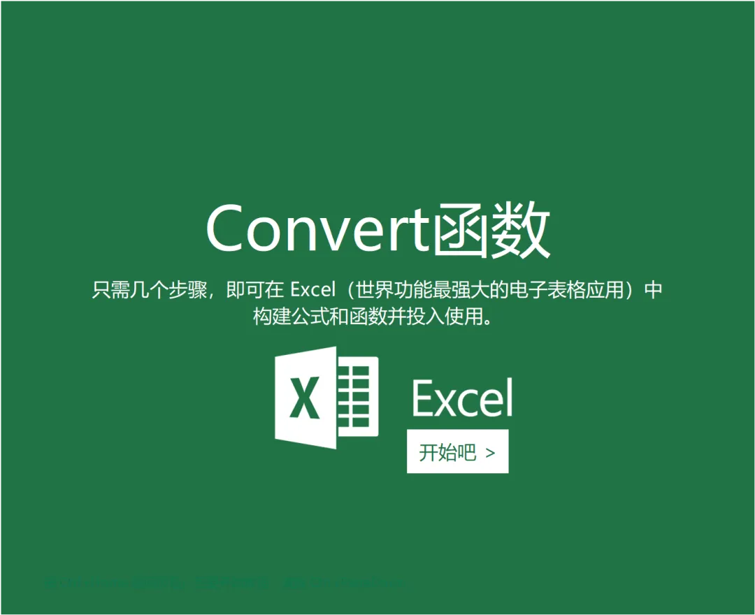 =CONVERT(number, from_unit, to_unit)参数说明: