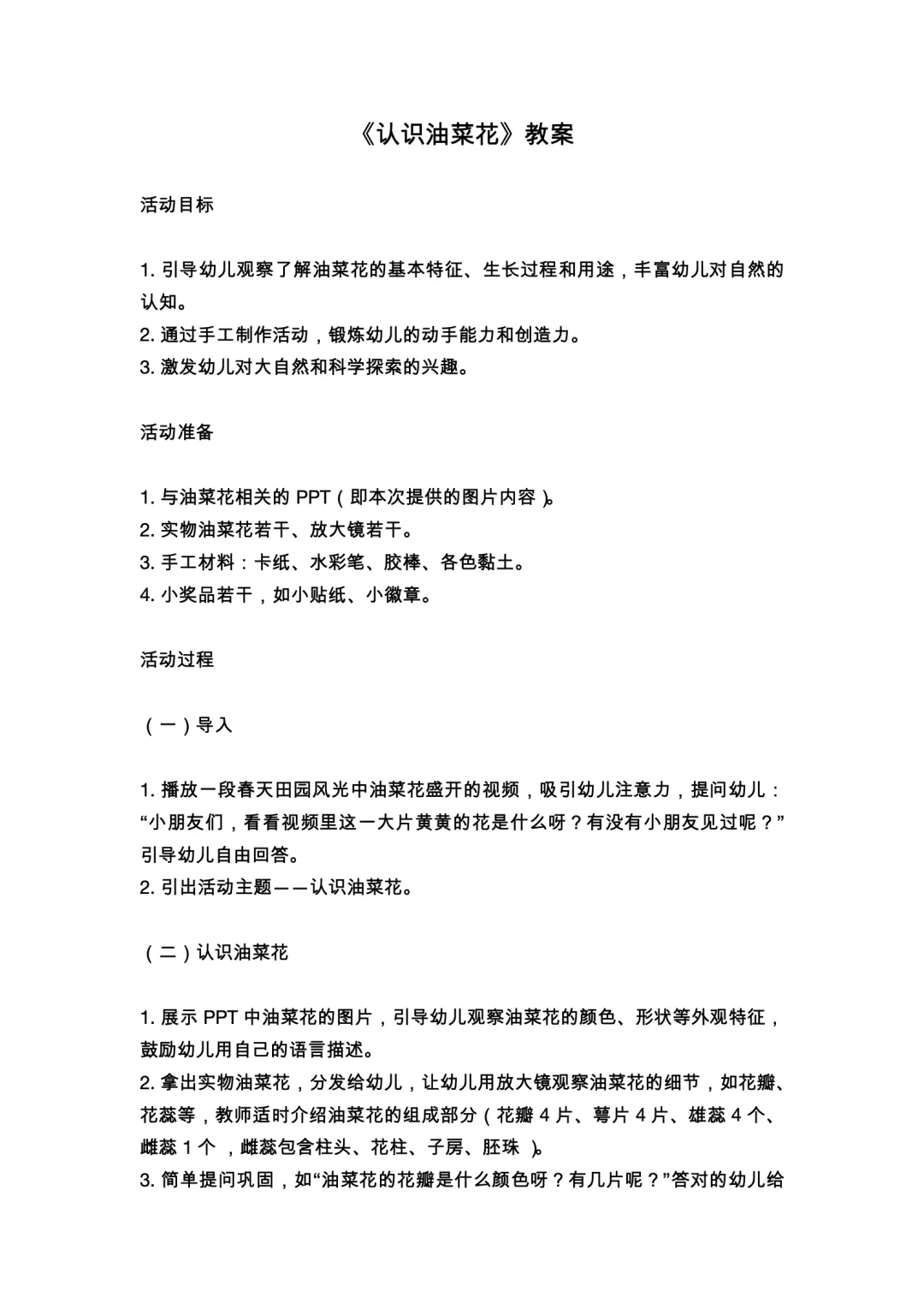 >幼儿园《美丽油菜花》 26页PPT+教案
