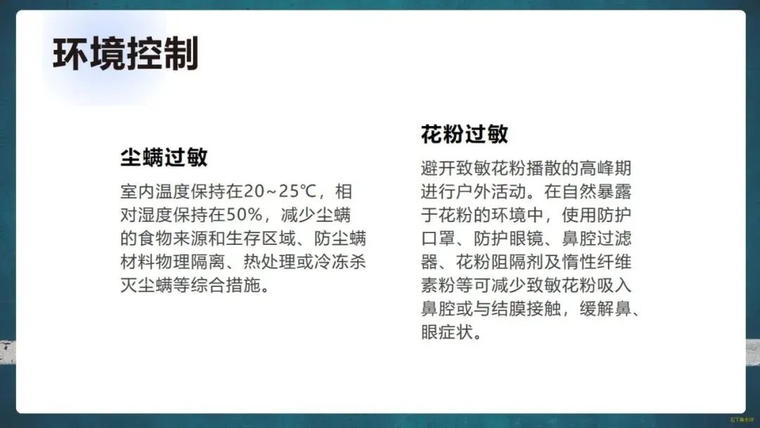 传统治疗包括环境控制、药物治疗和健康教育。药物方面,鼻用激素和抗组胺药是一线选择,但只能控制症状,无法根治。