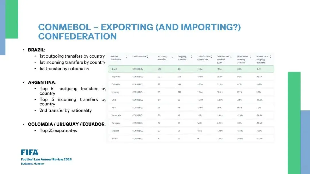 •哥伦比亚 / 乌拉圭 / 厄瓜多尔 (COLOMBIA / URUGUAY / ECUADOR):(附表:南美足联各成员国转会数据概览)