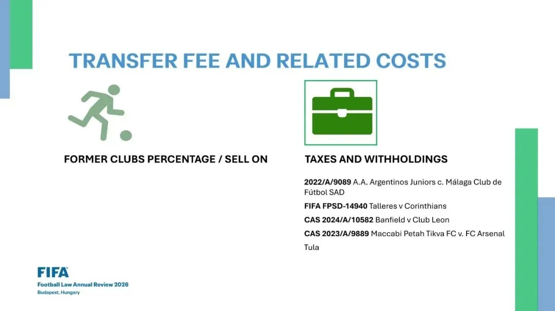 •CAS 2022/A/9089 阿根廷青年人 (A.A. Argentinos Juniors) v. 马拉加足球俱乐部 (Málaga Club de Fútbol SAD)•FIFA FPSD-14940 塔列雷斯 (Talleres) v. 科林蒂安 (Corinthians)•CAS 2024/A/10582 班菲尔德 (Banfield) v. 莱昂俱乐部 (Club Leon)•CAS 2023/A/9889 马卡比佩塔提克瓦 (Maccabi Petah Tikva FC) v. 图拉兵工厂 (FC Arsenal Tula)