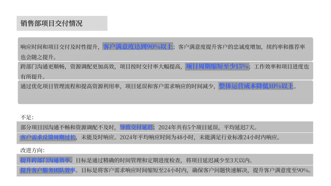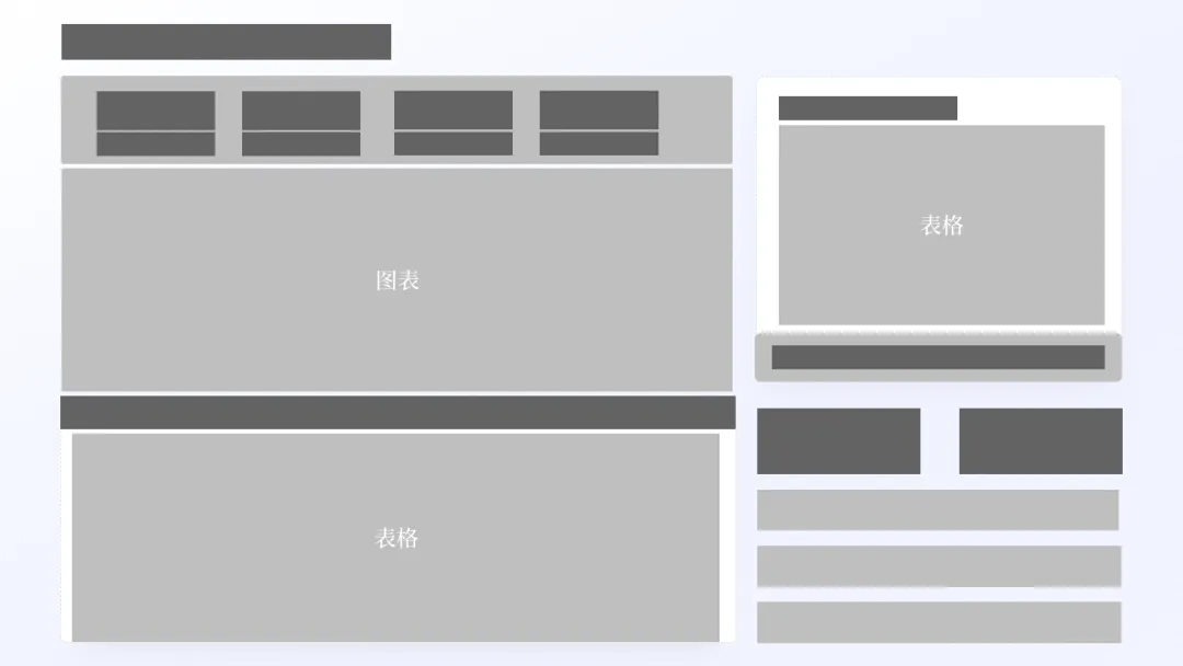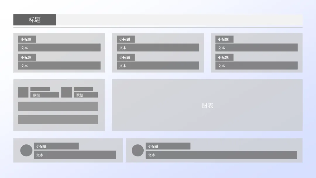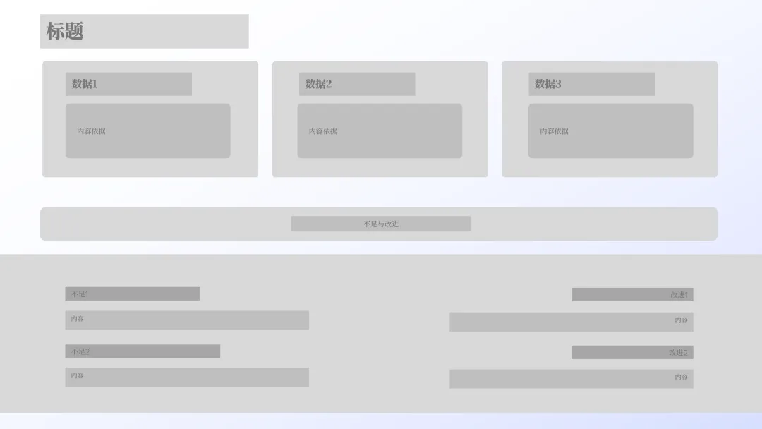 简而言之,就是先根据内容的逻辑结构,用色块在 PPT 页面上画出各个内容板块的位置,每个色块就相当于一块信息的占位符。通过这种方式,我们可以在不插入真实内容的情况下预先规划版式布局。再把占位形状块替换为文本、图表、表格、图片等其他对象 ↓把所有要呈现的内容先「装」进一个个矩形框中,每个框代表一段文字、一个要点或一张图片。这样一来,内容的结构一目了然,版面的整体布局也就初步成型了。那么问题来了,如何通过「画框占位」来构建画面合理清晰的布局呢?第一步,我们先仔细阅读 PPT 内容,然后提炼关键信息,并进行信息分块。你还可以对内容进行结构化梳理,整理出内容逻辑如下:第二步,用形状块进行页面布局规划。