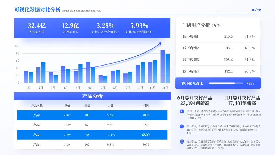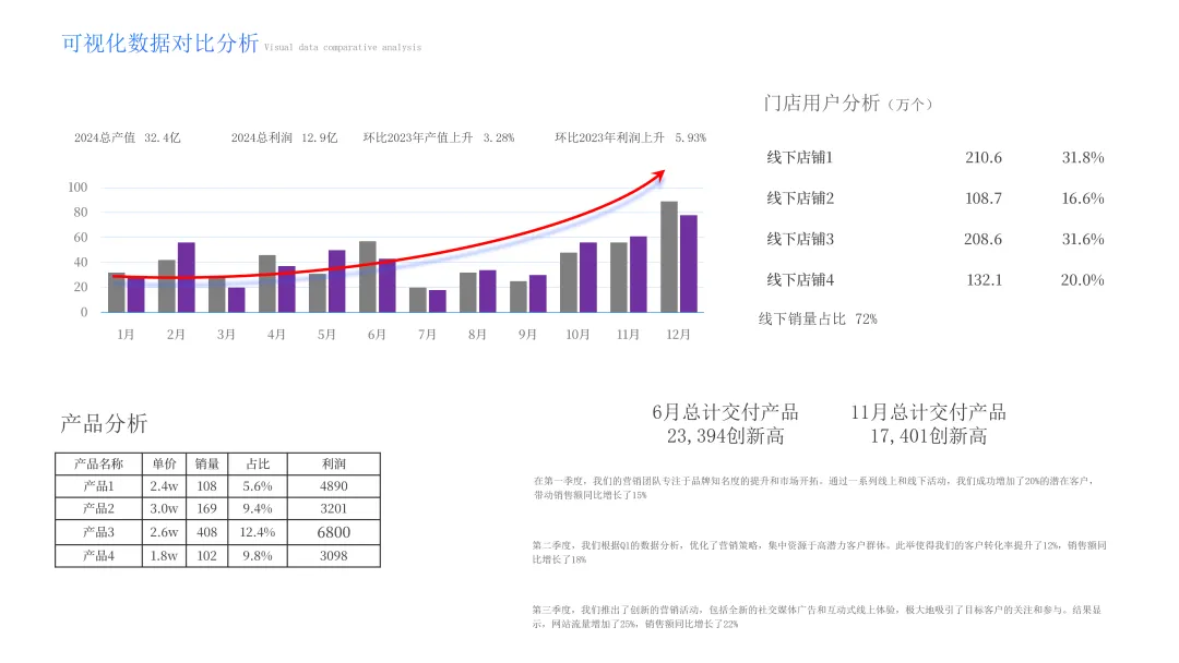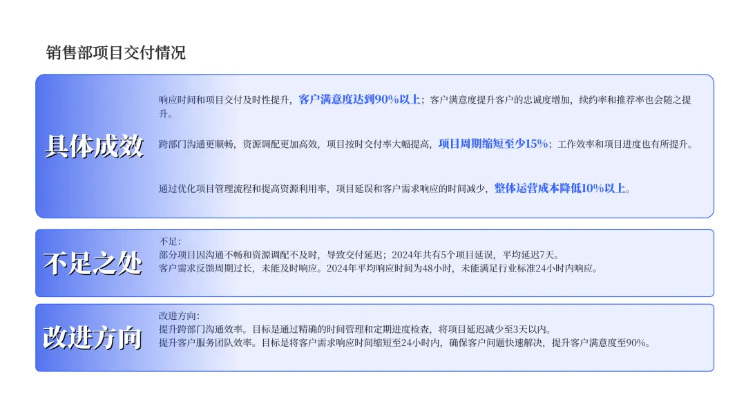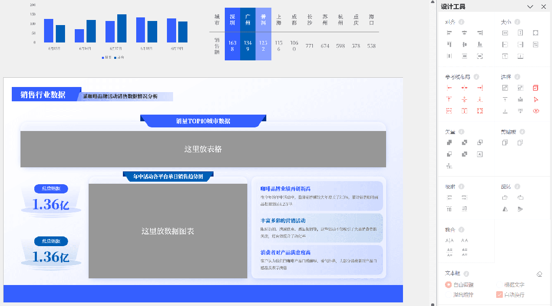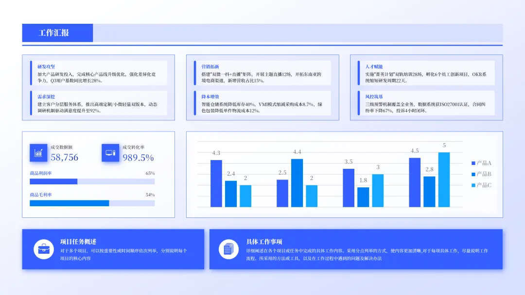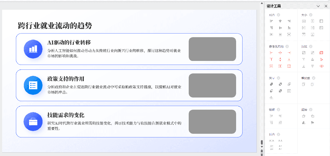 在这个阶段,我们将在之前划定的区域内填充内容,并通过视觉元素来增强信息的表现力。如:添加文本内容、插入图形和图表、统一字体和颜色、添加图标等等。需要注意一点,在这一步的操作当中,要严格遵循第二步确定好的排版布局,不要轻易打乱原始布局。分享一个实用的功能, iSlide 插件中的「位置交换」,能显著提升你排版的速度与质量。(上述 Gif 动图是为了便于理解而动态展示的交换过程,实际操作时没有动画过渡效果。)理解了这个功能,我们可以把最终要放在画面中的图片轻松「替换」到已经规划好的位置上,再把占位形状删除即可。从最开始的原始内容到最后的设计页面,完整的思考和设计过程如下图所示: