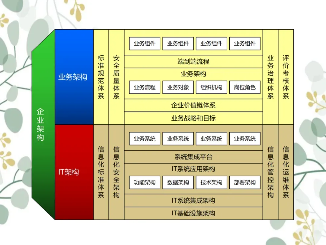 - 业务架构:定义业务流程、价值流、业务能力以及业务模型。