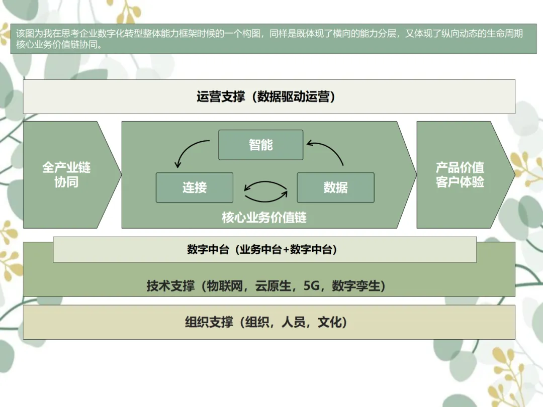 企业数字化转型架构应该是一个全面的、多维度的框架,它不仅包括技术上的改变,也涵盖了组织文化、业务流程、人才发展等多个方面。每家企业的情况不同,因此需要根据自身的特点和需求来定制适合自己的数字化转型架构。