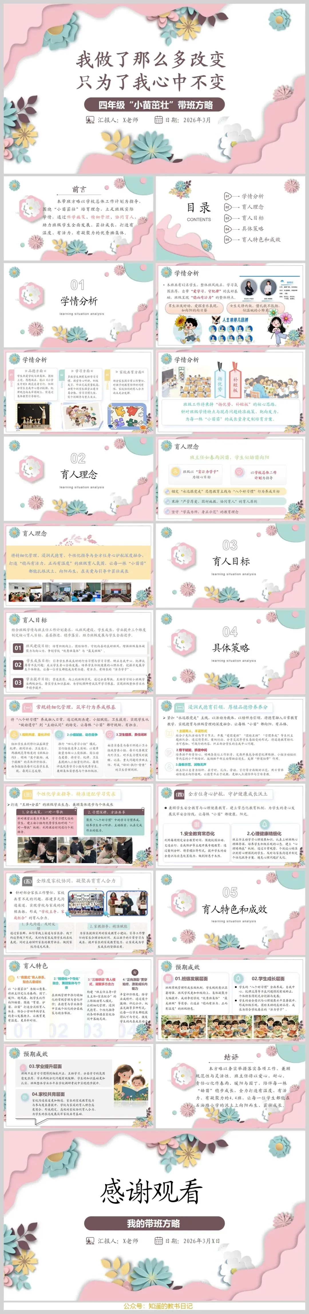 今天为大家力荐一份四年级班主任带班方略PPT——《我做了那么多改变,只为了我心中不变》。这份方案思路清晰、策略具体,从学情分析到育人成效,环环相扣,极PPT具参考价值。