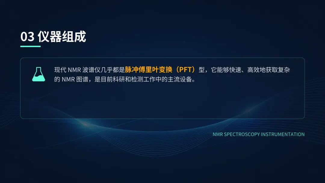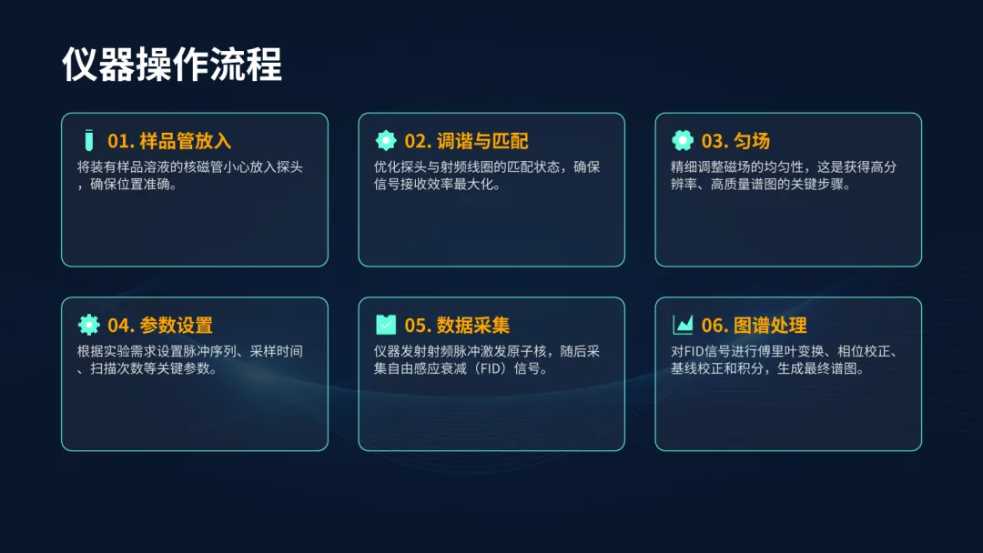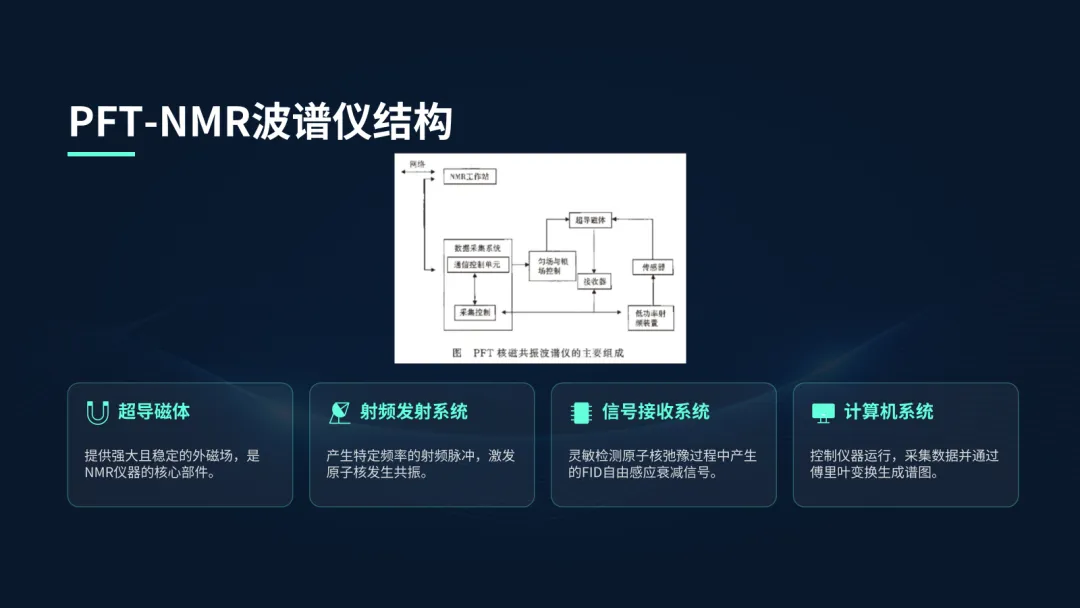 核心是超导磁体,它能提供高达十几特斯拉的强磁场。射频系统负责发射和接收信号,而计算机系统则负责整个过程的控制和数据处理,将接收到的时间域信号(FID)通过傅里叶变换转换为我们熟悉的频率域谱图。