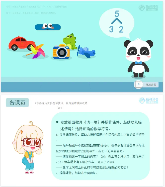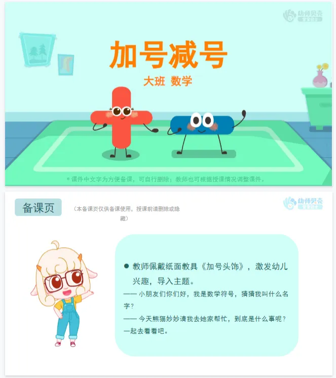 >大班数学《加号减号》PPT+教案 分享