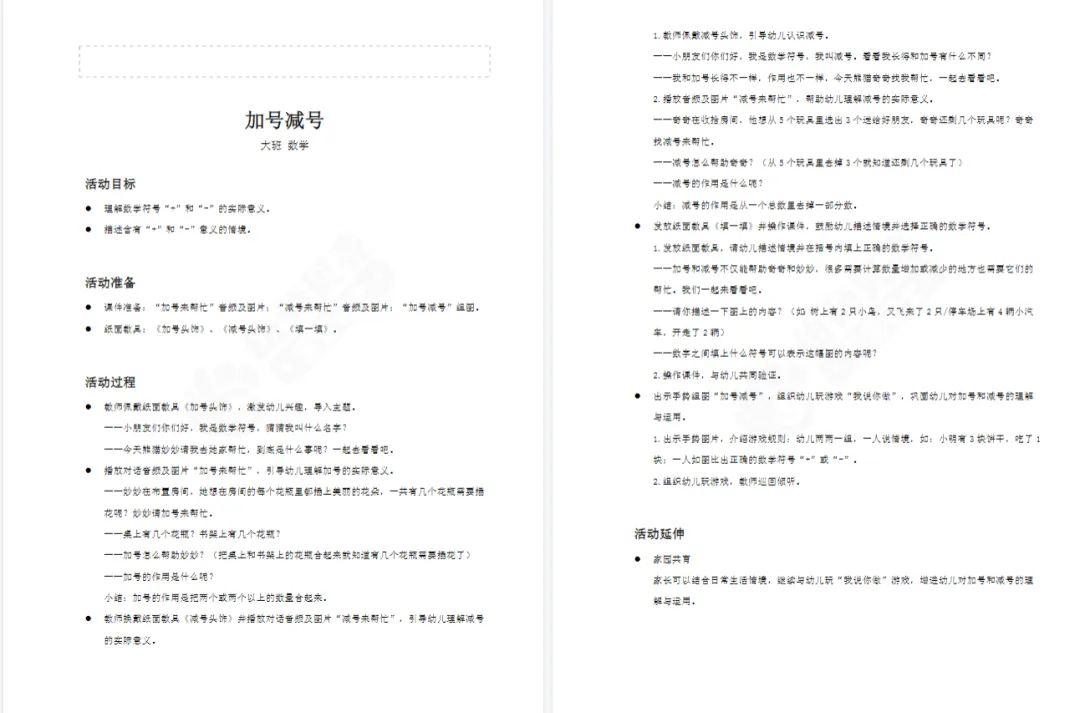 大班数学《加号减号》PPT+教案 分享