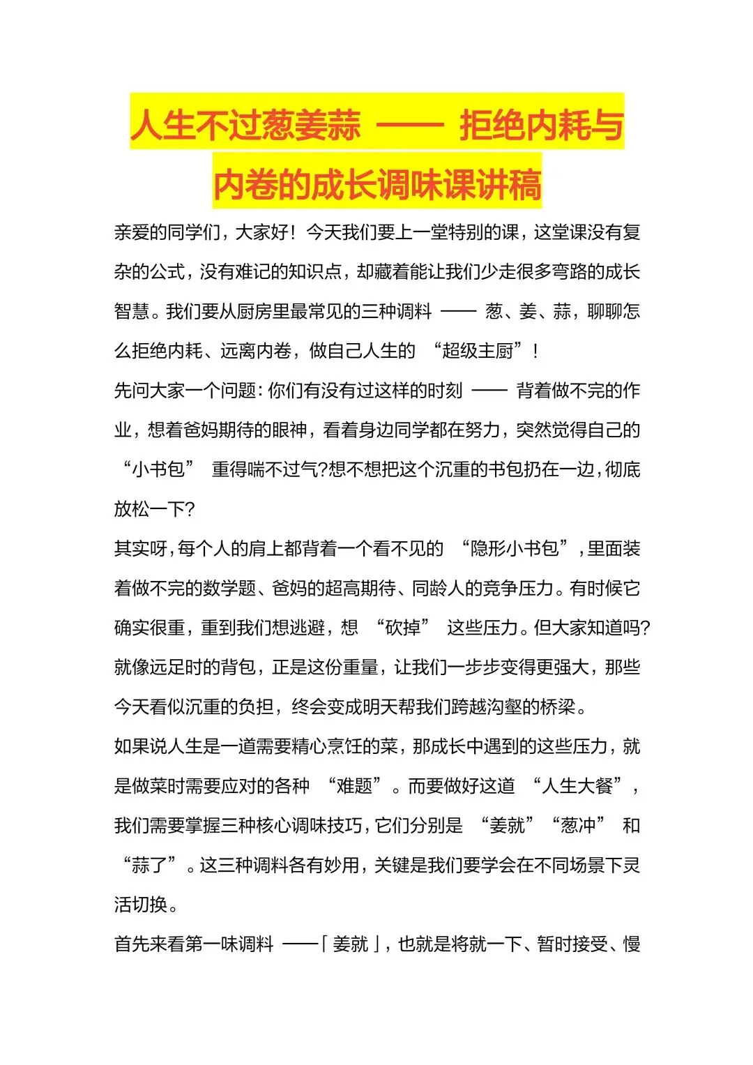 【中小学】【心理健康】拒绝内耗主题班会PPT+逐字稿:人生不过葱姜蒜