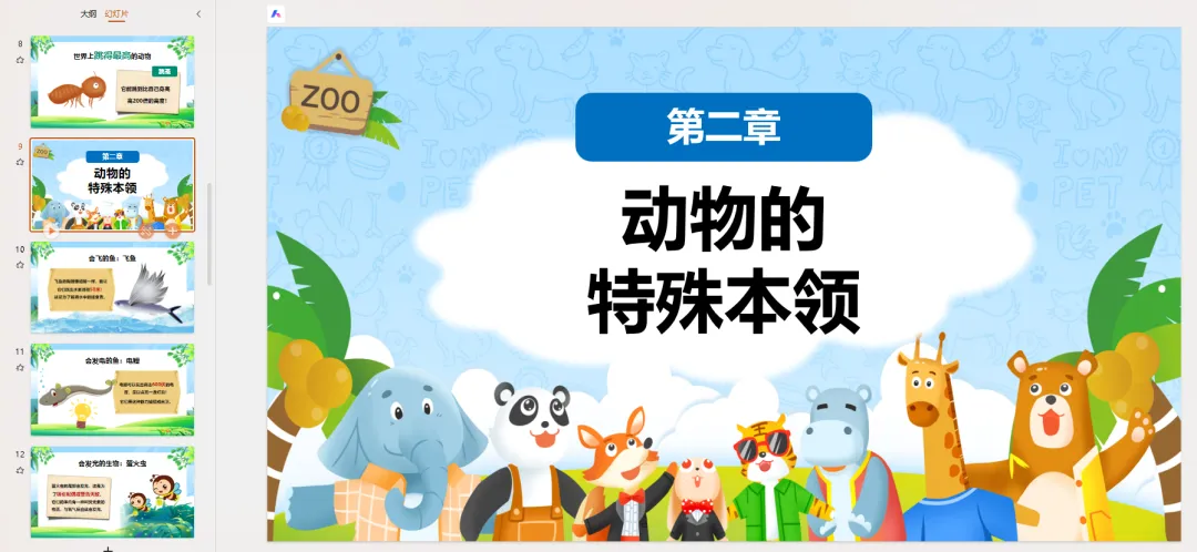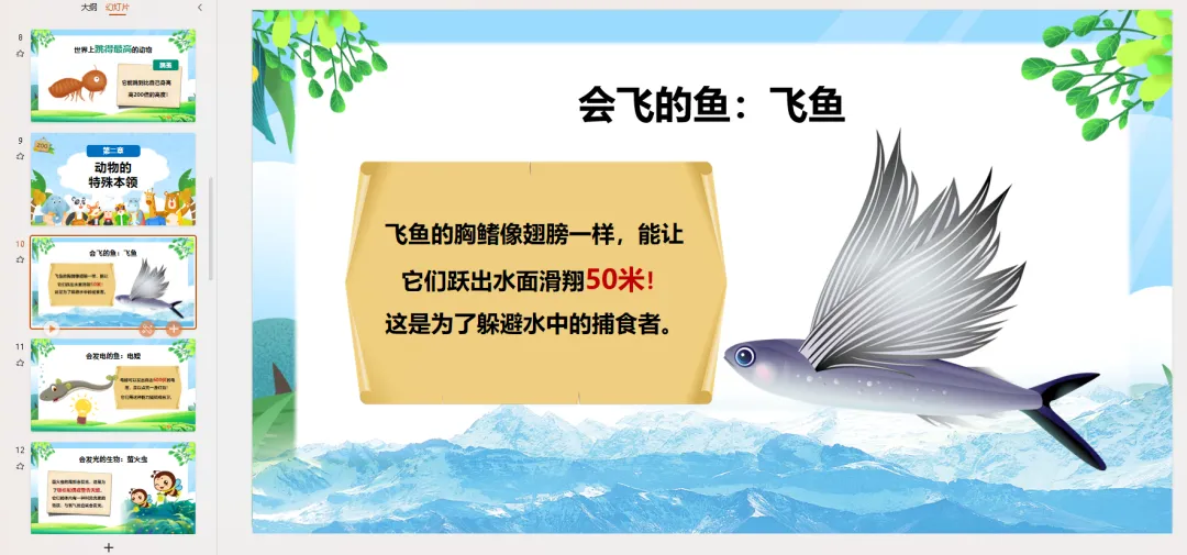 PPT页面 9-12: 动物的特殊本领接下来,我们来看看动物们的“超能力”!